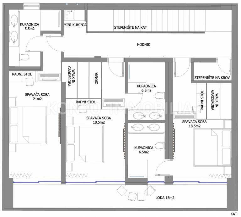U mjestu Banjol, samo 150 m od plaže i 30-tak minuta hoda od centra, prodaju se dvije moderne vile s pogledom na more, potpuno namještene kvalitetnim namještajem i opremom. Svaka vila ima pripadajuću okućnicu površine oko 500 m2 sa zasebnim bazenom, jacuzzijem, sunčalištem, grillom, parkingom i vrtom. Vile su izuzetno lijepog arhitektonskog rješenja: radi se o dvoetažom stanu s podrumskim prostorom, ukupne površine 250 m2, u kojem se nalaze kupaonica, strojarnica, sauna, fitness, vešeraj i mini kuhinja, sve povezano unutarnjim stepeništem. Iz lijepo uređene okućnice, ulazi se u prizemlje, koje sadrži spremište, WC, kuhinju s blagovaonicom i dnevnim boravkom (open space), spavaće sobe s kupaonicom, te stepeništa koje vodi u podrum, te na kat, u kojem su smještene tri prostrane spavaće sobe, svaka s kupaonicom, hodnika i mini kuhinje. Na katu objekta izvedeno je stepenište za izlaz na ravni krov, gdje je moguće izvesti krovnu terasu s koje bi se pružao panoramski pogled na more. Vile su građene visokovalitetnim materijalima, grijanje/hlađenje putem toplinskih pumpi, pripadaju energetskom razredu A+. Pogodne su za stalno stanovanje ili povremeno korištenje, ali svakako zanimljive za investiciju. Vile se prodaju isključivo zajedno, te se cijena odnosi na obje vile!