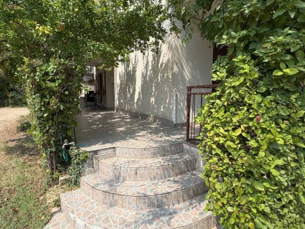 Na ograđenoj okućnici se nalazi vrt sa stablima maslina i smokava, te parkirna mjesta.