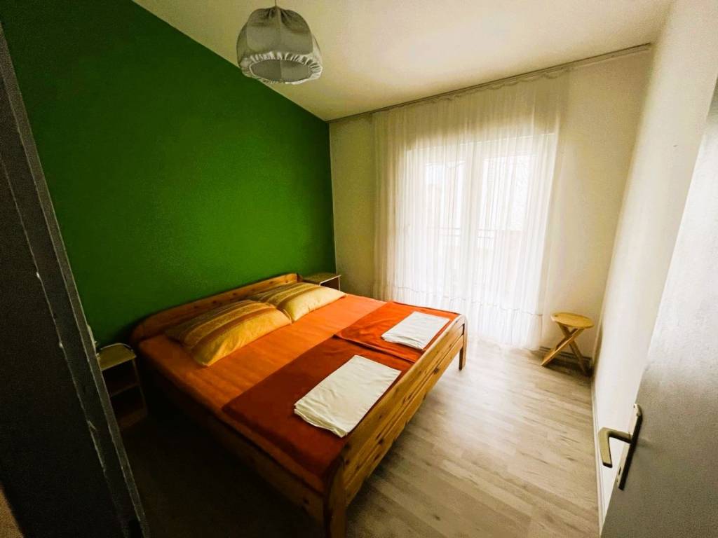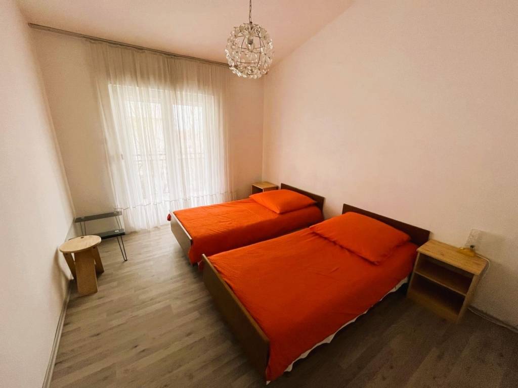Veći stan, površine 58 m2, se sastoji od 2 spavaće sobe, kuhinje-blagovaone-dnevnog boravka, kupaonice, 2 balkona.