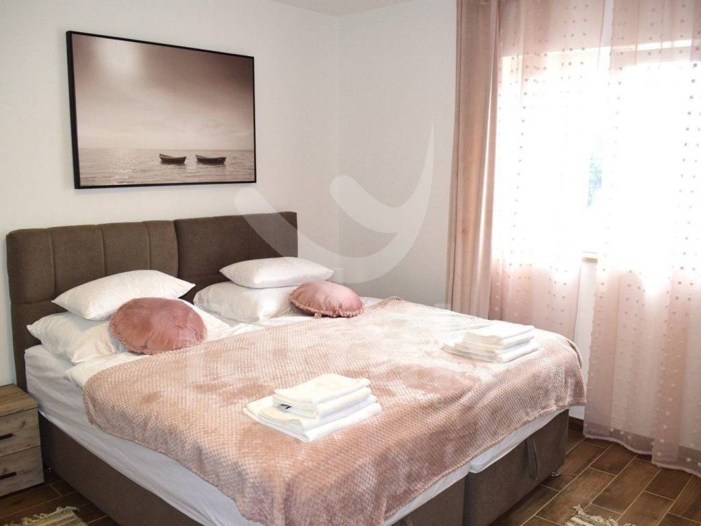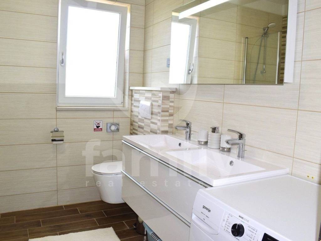Na gornjoj etaži povezanoj unutarnjim stepenicama se nalaze četiri spavaće sobe sa četiri kupatila i unutarnjim stepenicama za izlaz na potkrovlje i predivnu krovnu terasu. Vila posjeduje električno nisko energetsko podno grijanje u prostranom dnevnom boravku, kuhinji i prostoru za ručanje, posjeduje i solarne kolektore za grijanje vode sa rezervoarom od 500l, što omogućuje ekonomičnije korištenje objekta, kao i visokokvalitetnu PVC stolariju i termo fasadu.