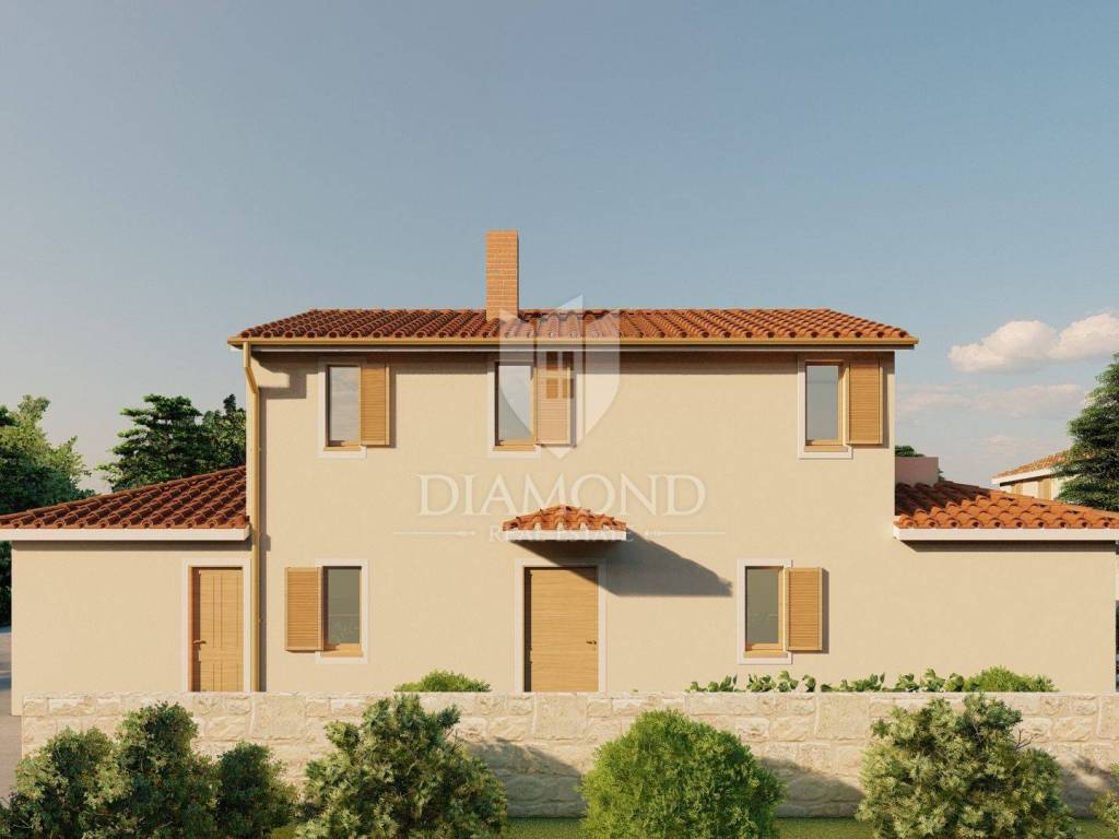 U mirnoj okolici Poreča, na rubu naselja, na prostranoj okućnici od 960 m² nalazi se moderna vila ukupne površine 152 m². Kuća raspolaže dvije etaže: u prizemlju se nalazi ulazni hodnik, dnevni boravak te otvorena kuhinja s blagovaonicom, spavaća soba s vlastitom kupaonicom i toalet za goste. Na katu su smještene još dvije prostrane spavaće sobe, svaka s privatnom kupaonicom i balkonom s prekrasnim panoramskim pogledom na okolnu prirodu. Dnevni prostor širi se na veliku natkrivenu terasu koja se nadovezuje na uredan vrt s bazenom od 42 m² i ugodnom zonom za sunčanje.