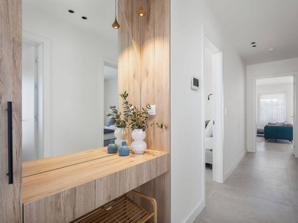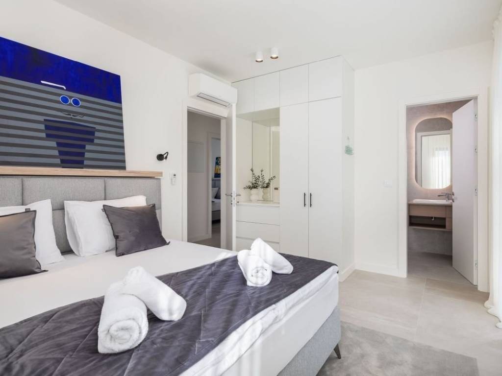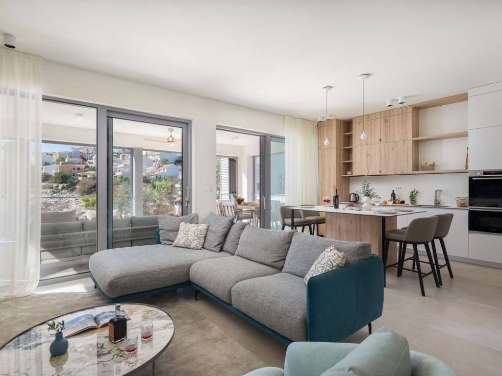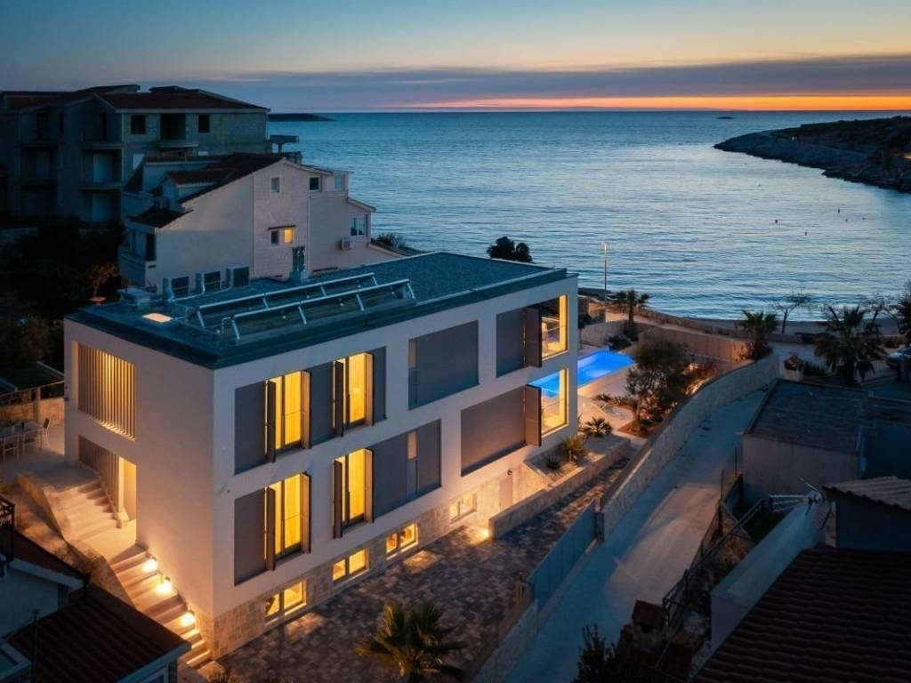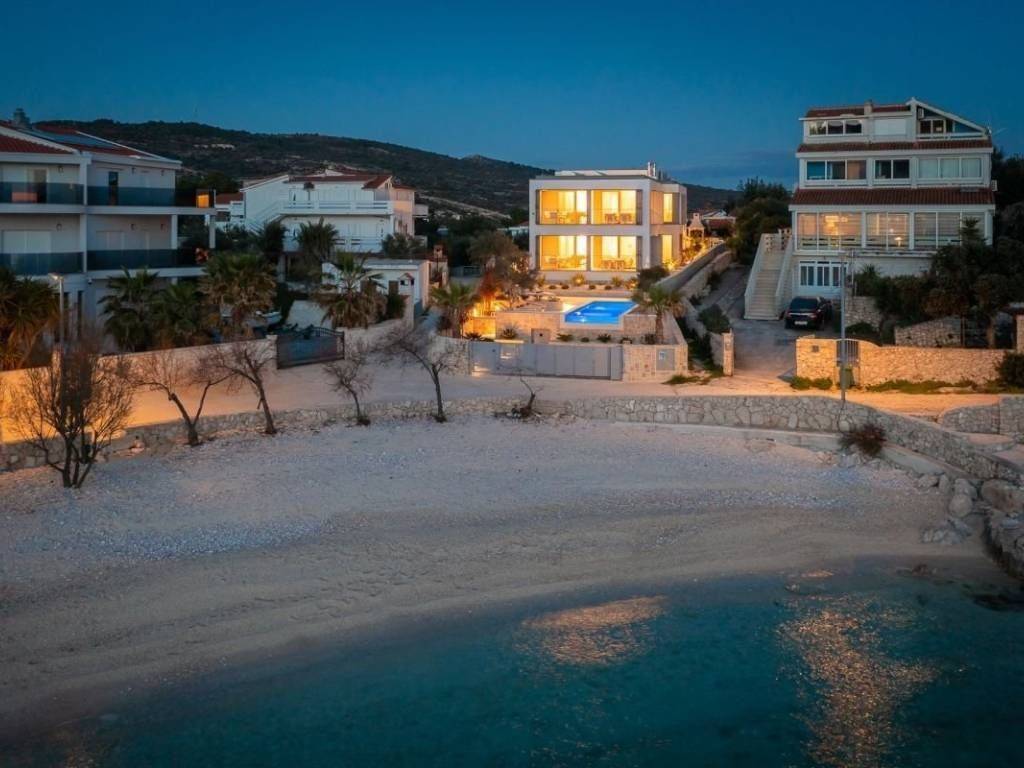 Na prodaju je prekrasna, novoizgrađena vila s bazenom smještena u malom turističkom naselju u blizini Rogoznice. Vila se nalazi u prvom redu do mora, u neposrednoj blizini očaravajuće prirodne šljunčane plaže i autentičnih kamenih stijena, a zahvaljujući jugozapadnoj orijentaciji uživa u obilju sunca i nezaboravnim zalascima. Izgrađena i opremljena vrhunskim materijalima, prostire se na tri etaže; prizemlje, kat i podrum, te nudi pet spavaćih soba i šest kupaonica. U podrumu se nalaze sadržaji za opuštanje i rekreaciju poput teretane, saune i jacuzzija, dok se na uređenoj i kultiviranoj okućnici nalazi preljevni bazen sa sunčalištem, vanjski grill i roštilj te parkiralište za više vozila. Vila se prodaje potpuno namještena i uređena, baš kao što je prikazana na fotografijama, a smještena je na idealnoj lokaciji, svega trideset minuta vožnje od Split i njegove međunarodne zračne luke, dvadeset minuta od Trogir te deset minuta od samog centra Rogoznice i svih bitnijih sadržaja. Ova elegantna nekretnina predstavlja savršen spoj modernog luksuza i autentičnog mediteranskog okruženja, idealna kao privatna oaza ili kao investicija za turistički najam.