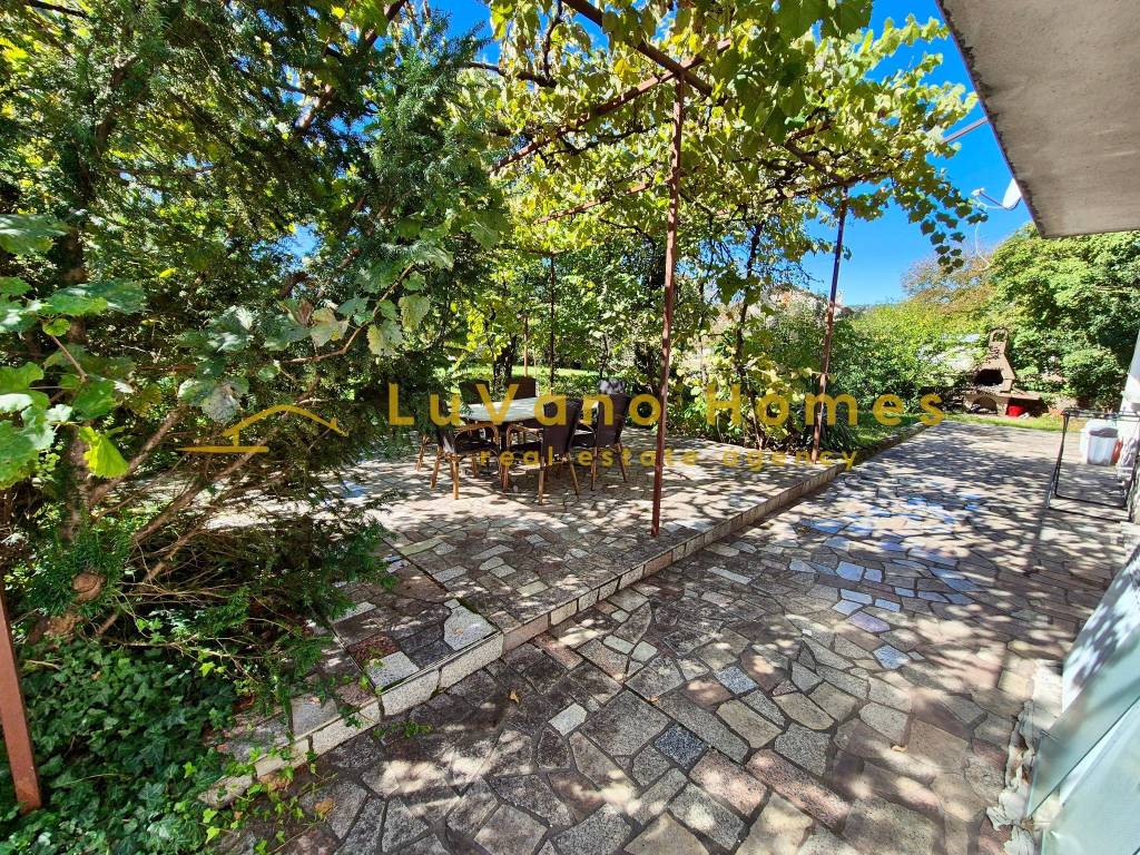 Posebna pogodnost je terasa površine cca 40 m², smještena ispred kuće, okružena zelenilom i pogodna za druženje i odmor. Stanari imaju na raspolaganju i grill za korištenje.