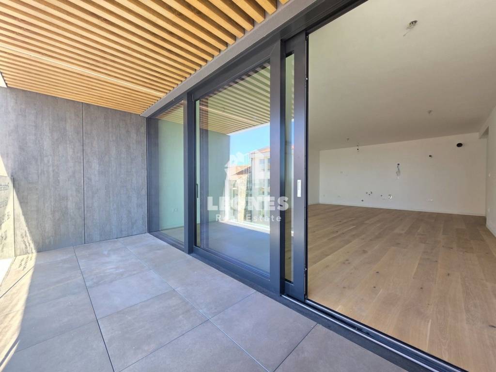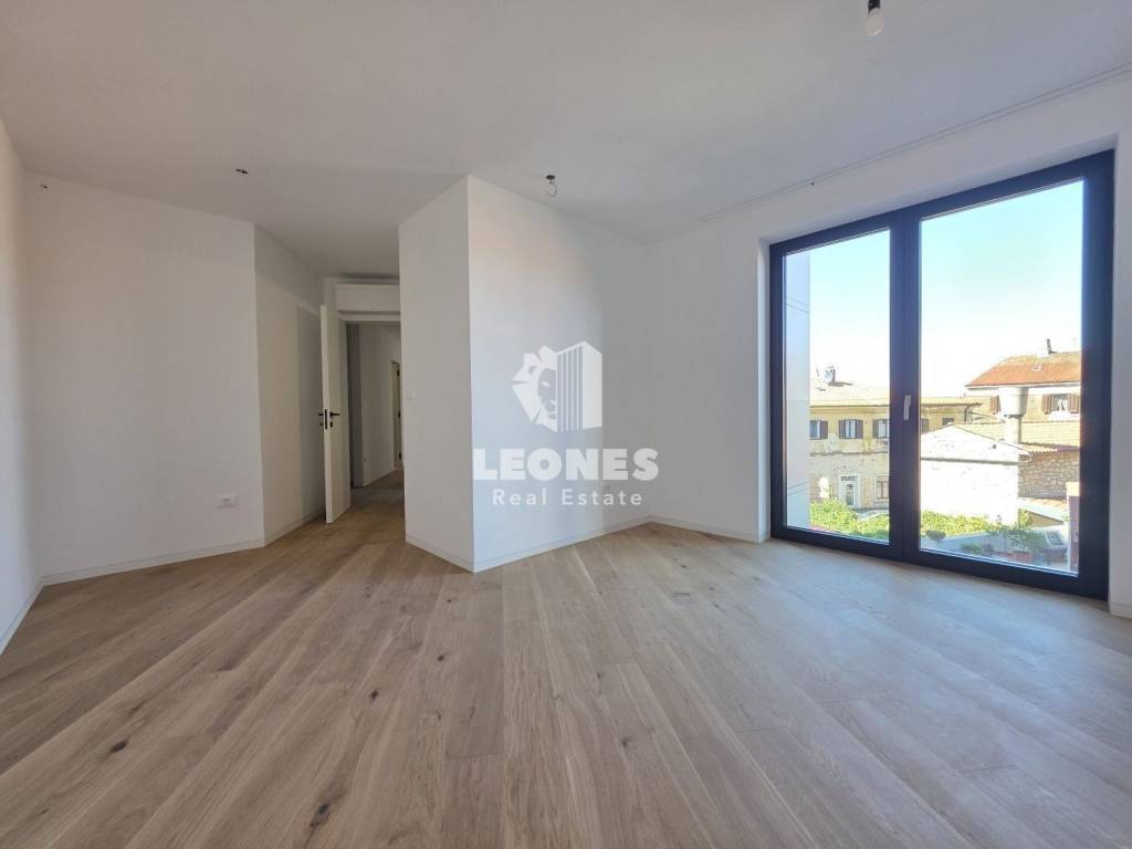 Vrhunski stan s pogledom na more na odličnoj lokaciji u UmaguProdaje se vrhunski stan s pogledom na more na odličnoj lokaciji u Umagu. Neto korisna površina stana je 98,05 m2 te se sastoji od dnevnog boravka i kuhinje, 2 spavaće sobe, 2 kupatila, ostave i lođe. Stanu pripada garažno parkirno mjesto i spremište. Stan se nalazi na drugom katu stambene zgrade koja ima ukupno 18 stambenih jedinica.Konstrukcija je betonska s Wienerberg Porotherm opekom širine 25 cm dok je fasada ventilirajuća s kamenom vunom što garantira odličnu toplinsku i zvučnu izolaciju. Grijanje je podno na aluminijske trake dok je hlađenje na Daikin klima uređaje. Stolarija je aluminijska (Wicona) s troslojnim staklom. Pločice su formata 120x60 cm dok je u spavaćim sobama postavljen hrastov parket prve klase. Sanitarije su Geberit s niskošumnim cijevima za odvodnju. Zgrada raspolaže velikim Schindler liftom.Stan je udaljen samo nekoliko koraka od mora i plaže kao i svih sadržaja te centra grada Umaga.www.leones-realestate.hr