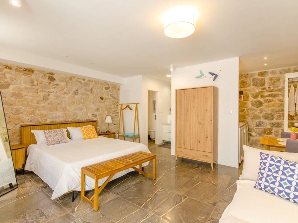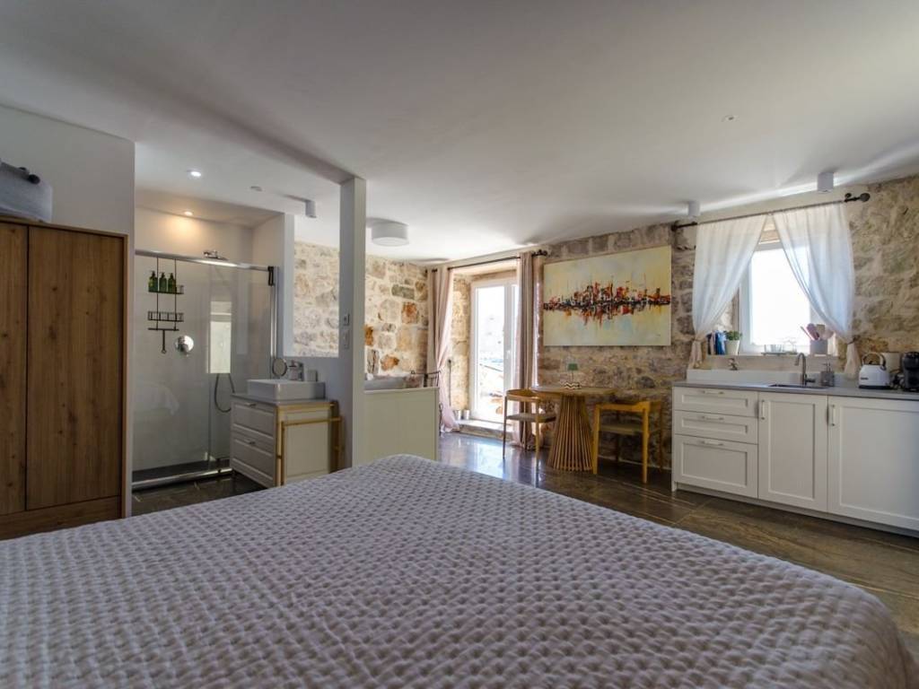 Ova autentična kamena vila, nedavno potpuno renovirana, nalazi se u samom srcu Komiže, svega nekoliko koraka od rive i svih sadržaja koje ovo šarmantno ribarsko mjesto nudi. Prostire se na tri etaže s ukupno oko 330 četvornih metara stambenog prostora te predstavlja savršen spoj tradicionalne dalmatinske arhitekture i modernih sadržaja potrebnih za ugodan boravak ili kratkoročni turistički najam.   U prizemlju se nalaze tri odvojena studio apartmana, svaki sa svojom kupaonicom i pomno osmišljenim interijerom koji kombinira vidljivi kamen i suvremeni namještaj, dajući im poseban šarm. Apartmani su idealni za goste ili turistički najam jer nude privatnost i zasebne ulaze direktno s ulice ili s plaže. Tu je i skriveno dvorište koje omogućuje privatni pristup svim trima apartmanima. Vila se nalazi u neposrednoj blizini glavnog trga i rive.   Prvi i drugi kat zauzima prostrani dvoetažni stan koji se proteže preko gornje dvije razine vile. Stan uključuje četiri spavaće sobe, svaka s vlastitom kupaonicom, što osigurava maksimalnu udobnost i privatnost. Središnji dio čini veliki otvoreni dnevni boravak povezan s kuhinjom i blagovaonicom. Cijeli prostor odiše toplinom zahvaljujući kombinaciji originalnih drvenih greda, suvremenog namještaja i detalja koji podsjećaju na tradiciju otoka. Iz dnevnog boravka pruža se direktan izlaz na prostranu terasu od 30 m² s prekrasnim panoramskim pogledom na Komižu, luku s ribarskim brodicama, veličanstvene zalaske sunca i otok Biševo u daljini. Kuhinja u liniji s otvorenim dnevnim boravkom i blagovaonicom u kombinaciji s terasom čini veliki životni prostor od oko 60 m², idealan za druženja.   Jedna od jedinstvenih prednosti ove nekretnine jest njen direktan pristup plaži. Zahvaljujući lokaciji, vila je izrazito atraktivna, bilo kao obiteljska kuća za odmor ili kao investicija za turistički najam. Gostima i vlasnicima pruža jedinstven doživljaj života uz more, s mogućnošću uživanja u svim čarima Komiže, od restorana i kafića do kulturnih znamenitosti i izleta brodom na okolne otoke i čuvenu Modru špilju.   Ova vila savršen je spoj autentičnog mediteranskog duha i suvremene udobnosti, nudeći sve potrebno za nezaboravan boravak u jednom od najljepših mjesta na Jadranu.   Komiža je nadaleko poznata po svojoj ribarskoj tradiciji. Smještena je u podnožju brda, s karakterističnim kamenim kućama, uskim ulicama i malim trgovima. Luka i riva prepune su kafića i konoba, stvarajući prepoznatljivu mediteransku atmosferu.   U okolici Komiže nalaze se brojne prelijepe šljunčane i pješčane plaže, poput plaže Kamenice (poznate po jedinstvenim crnim vulkanskim oblutcima) i plaže Gusarica. More je kristalno čisto, a zahvaljujući zapadnoj orijentaciji grada, nekretnina uživa u spektakularnim zalascima sunca.   Iz Komiže polaze brodski izleti do čuvene Modre špilje na Biševu, jednog od najzanimljivijih prirodnih fenomena Jadrana. U blizini se nalazi i otok Palagruža, simbol ribarske tradicije i najudaljeniji hrvatski otok.   Vila ima samo jednog vlasnika, što jamči uredan prijenos vlasništva, a može se kupiti kao privatna osoba, u suvlasništvu ili putem lokalno osnovane tvrtke.