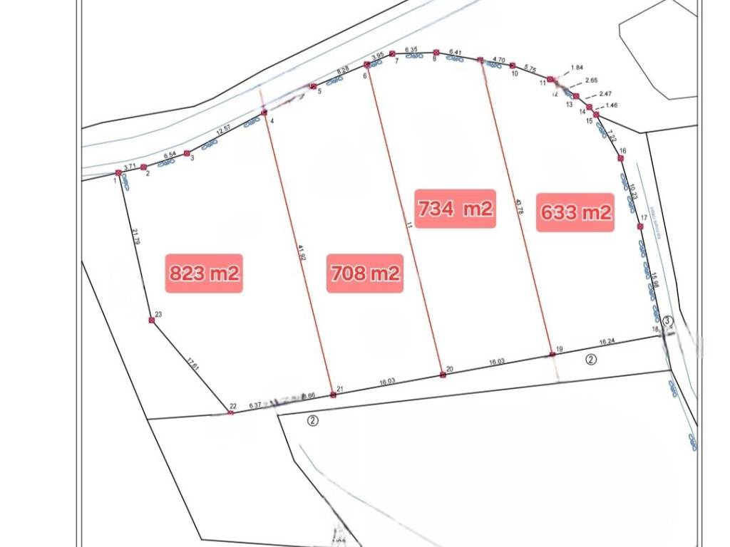 Građevinske parcele su od 823 m2,708 m2,734 m2 i 633 m2.