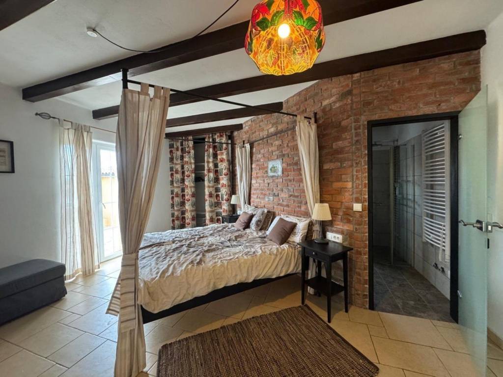 U mirnom dijelu Istre prodaje se prekrasna luksuzna vila izgrađena 2017. godine. Smještena na potpuno ograđenoj parceli od 900 m², ova nekretnina nudi privatnost, mir i očaravajući pogled na more, idealno za odmor, opuštanje i uživanje u mediteranskom načinu života.Vila se prostire na 150 m² i sastoji se od prostranog dnevnog boravka s kaminom, moderne kuhinje, dvije spavaće sobe s vlastitim kupaonicama te dodatnog WC-a. Unutarnjim stepeništem dolazimo na galeriju koja vodi na krovnu terasu s panoramskim pogledom, a na galeriji je smješten dodatni ležaj.Vanjski prostor uređen je za maksimalno uživanje – velika natkrivena terasa s garniturom za sjedenje i grillom, grijani bazen s ležaljkama, vanjski WC i tuš te lijepo uređen vrt. Na raspolaganju je natkriveni parking i spremište.Vila je opremljena s dva solarna panela za grijanje vode, četiri klima uređaja (grijanje/hlađenje), podnim grijanjem u kupaonicama i kaminom na drva, što osigurava udobnost tijekom cijele godine.Osnovne značajke nekretnine:Stambena površina: 150 m²Zemljište: 900 m²Grijani bazen2 spavaće sobe + galerija2 kupaonice + dodatni WCPotpuno opremljena kuhinja i blagovaonicaNatkriveni parking i uređen vrtSolarni paneli za grijanje vodePogled na moreOva luksuzna vila predstavlja idealnu priliku za sve koji traže nekretninu u Istri s visokim standardom, privatnošću i fantastičnim pogledom, pogodnu za život ili turistički najam.