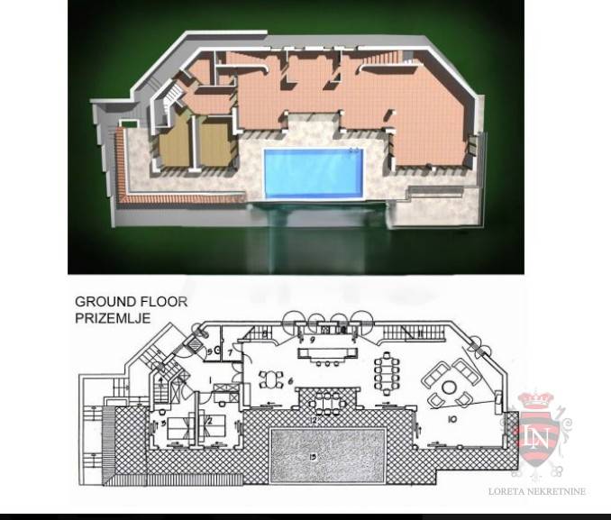 Projekt je osmišljen za katnicu s bazenom koja se sastoji od suterena, prizemlja i kata neto površine 471 m2.