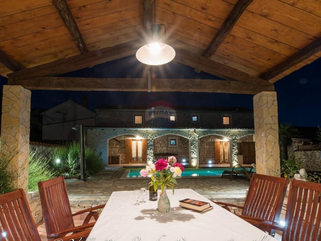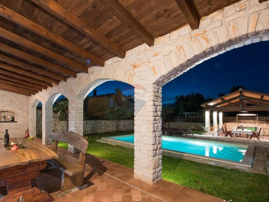Na zajedničko korištenje ispred vile proteže se terasa od 50m 2 i veliki grijani bazen sa natkrivenim prostorom gdje uživati u odmoru i zabavi u večernjim i dnevnim momentima.