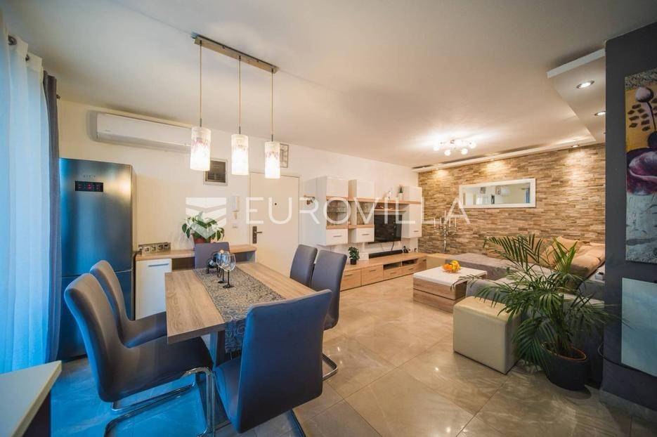Predstavljamo stan smješten na drugom katu manje zgrade na top lokaciji. Na samo 750 m od mora s pogledom na prirodu pruža i idealan raspored prostorija.U 60,78 m2 rasporedili su se ulazni hodnik, open space prostor koji spaja dnevni boravak s kuhinjom i blagovaonicom, dvije spavaće sobe, natkrivena terasa i kupaonica.Stan je opremljen klima uređajima za grijanje i hlađenje te se prodaje kompletno namješten.Pripada mu jedno parkirno mjesto.