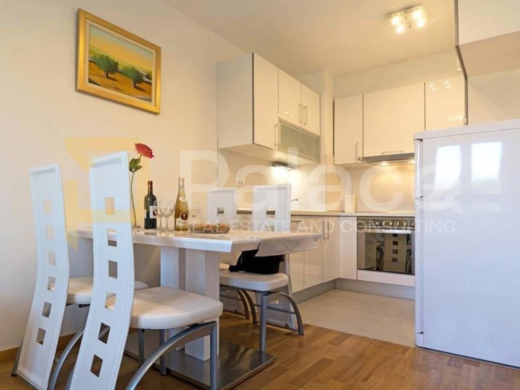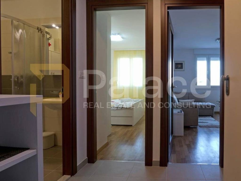 Uređen je za život, a ima jednu spavaću sobu, wc, kuhinju, blagovaonicu, dnevni boravak i balkon.