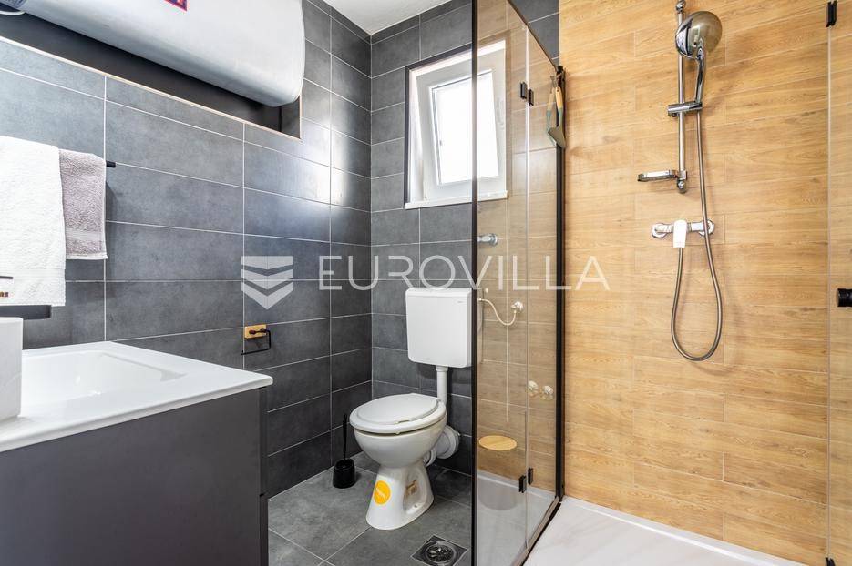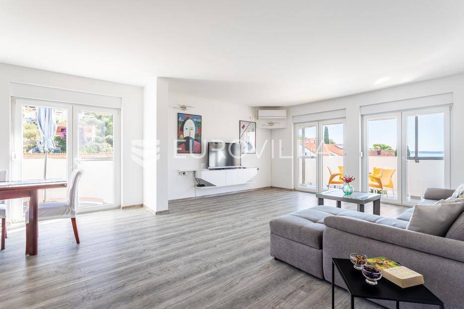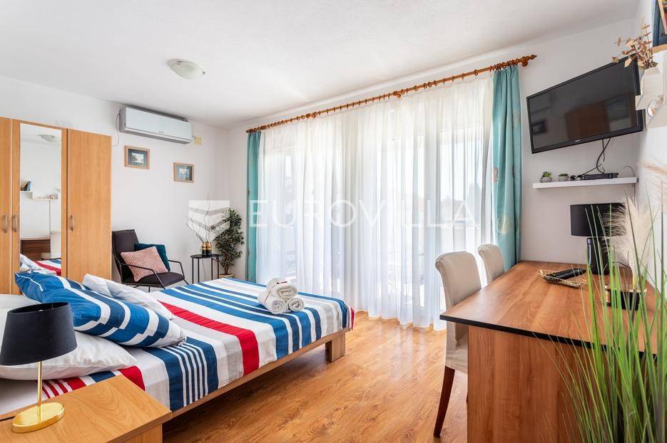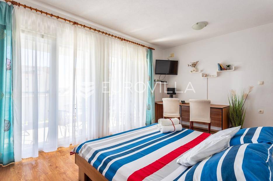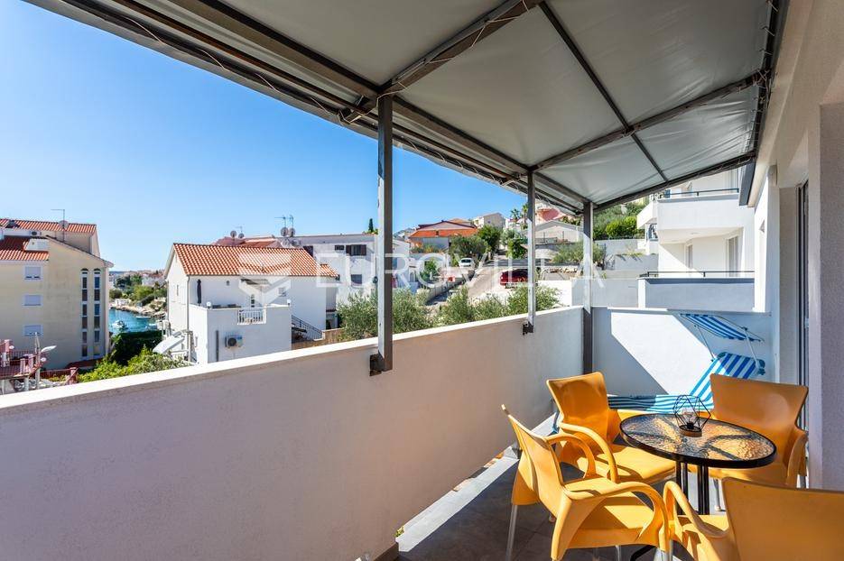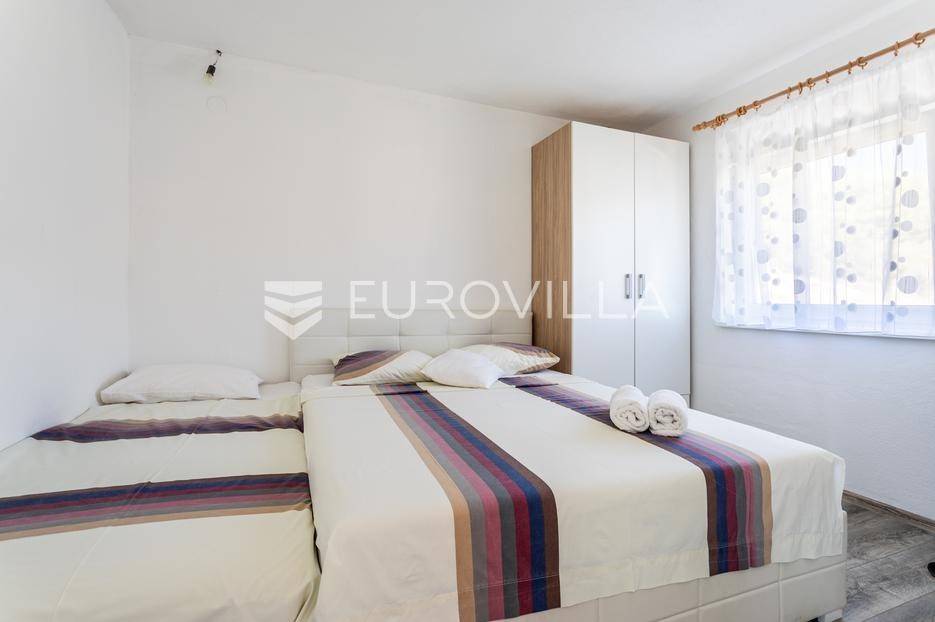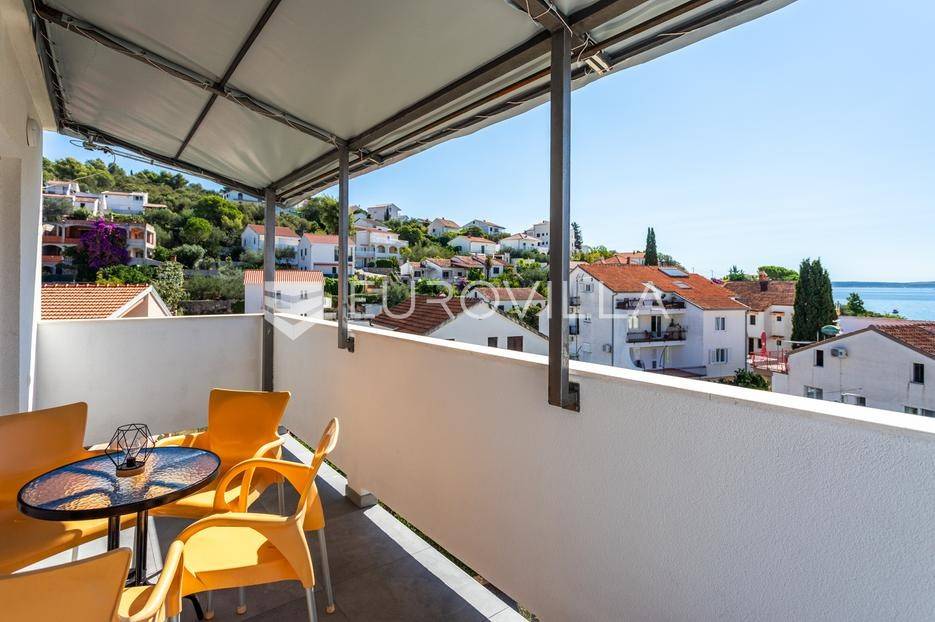 Čiovo, Okrug Gornji - višestambena kuća položena na zemljištu površine 420 m2 , udaljena samo 80 m od mora.Podijeljena je na četiri potpuno opremljena apartmana, što omogućuje nastavak već uhodanog i profitabilnog turističkog najma.Raspored prostorija:Na najvišem katu nalazi se dvosoban stan koji obuhvaća prostrani dnevni boravak, kuhinju s blagovaonicom, modernu kupaonicu, dodatni WC, hodnik i dvije spavaće sobe, te dva balkona - jedan nenatkriven s izlazom iz blagovaonice i jedan natkriven koji se nastavlja na dnevni boravak, s pogledom na more.Srednji kat podijeljen je na dva jednosobna apartmana s odvojenim ulazima. Istočni apartman ima dnevni boravak s kuhinjom i blagovaonicom, spavaću sobu, kupaonicu i natkrivenu terasu. Zapadni apartman sastoji se od dnevnog boravka s kuhinjom i blagovaonicom, spavaće sobe s izlazom na veliku sunčanu terasu te kupaonice.Prizemlje obuhvaća prostrani stan i krasnu okućnicu. Jednosoban stan sastoji se od dnevnog boravka, kuhinje s blagovaonicom, velike spavaće sobe, kupaonice te natkrivene terase s blagovaonskim stolom.Vanjski prostor nudi uređen vrt prepun mediteranskog bilja, od maslina, ružmarina, vinove loze, pa do palmi i raznog cvijeća. pruža ambijent za potpuni odmor. Tu se nalazi i vanjska kuhinja s kaminom, sudoperom i pećnicom, idealna za druženja u hladovini vinove loze.Orijentacija apartmana je na istok, jug i zapad koji osiguravaju obilje sunca tijekom cijelog dana, a s viših katova pruža se lijep pogled na more.Pet parking mjesta osigurano je odmah uz kuću.Sve dodatne informacije dostupne su na upit.