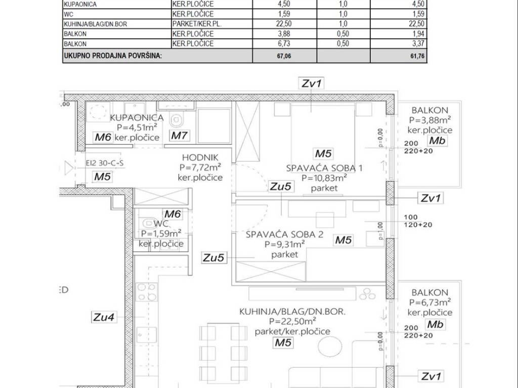 - balkon (ker.pločice) (3,88 x 0,50) 1,94 m2