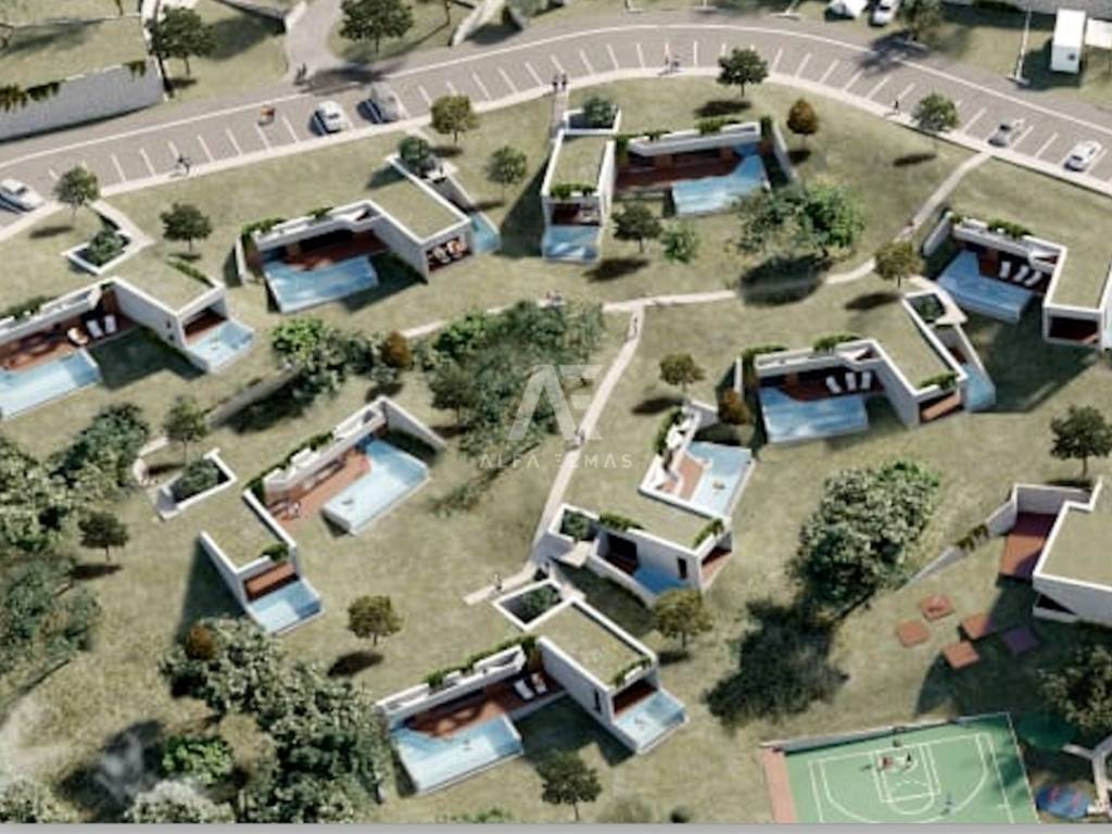 Dizajn parcela: Svaka parcela odvojena je zelenim pojasom s niskim zelenilom, a završni sloj terena je šljunak.