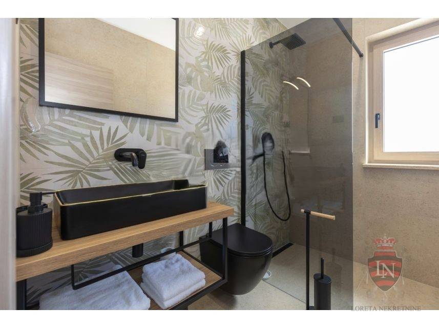 Na katu se nalaze dvije prostrane spavaće sobe, svaka s vlastitom kupaonicom i izlazom na natkrivenu terasu s pergolom. Svaka soba opremljena je klima uređajem za ugodnu temperaturu tijekom cijele godine, uz dodatnu udobnost podnog grijanja.