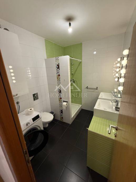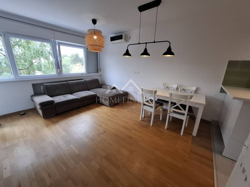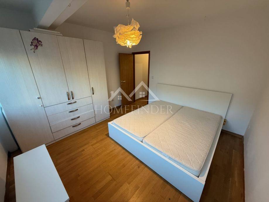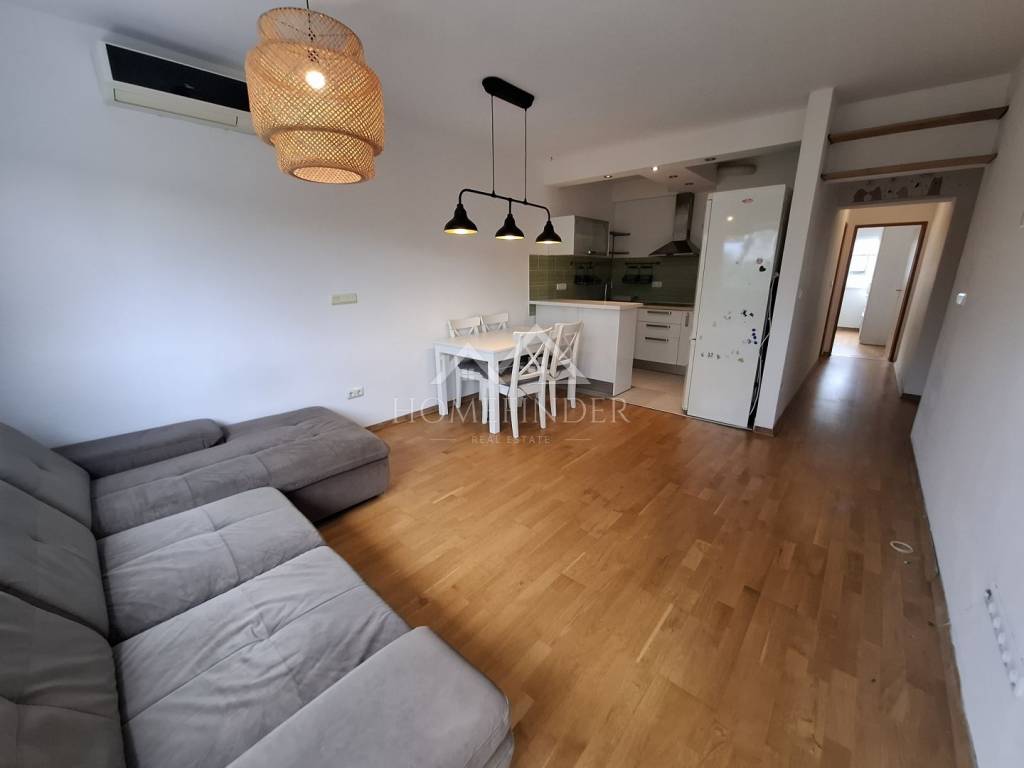 Prostor je svijetao i funkcionalan, s dvije spavaće sobe, prostranim dnevnim boravkom povezanima s kuhinjom i blagovaonicom, kupaonicom te hodnikom. Dnevna soba i spavaća soba imaju izlaz na balkon. Ugrađena je kvalitetna nova PVC stolarija s roletama, protuprovalna ulazna vrata te klima uređaj koji dodatno doprinosi udobnosti. Stan dolazi i s pripadajućim spremištem u podrumu zgrade, koja je uredno održavana.