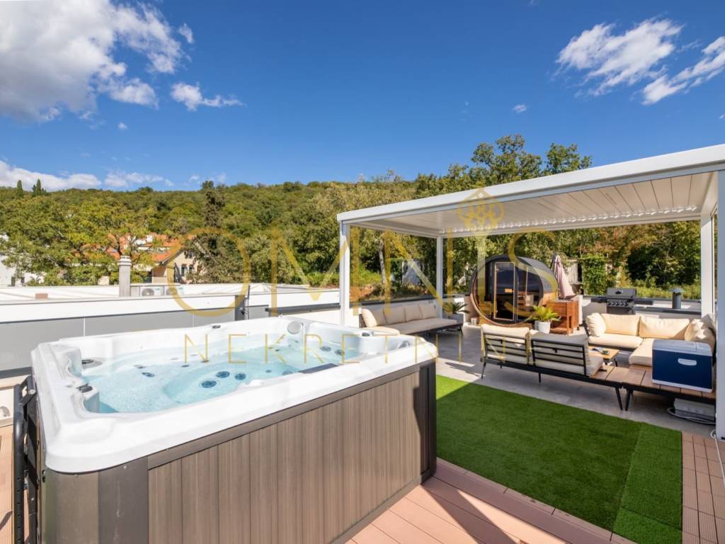 Stan dolazi potpuno opremljen – kuhinja s aparatima, perilica posuđa, perilica rublja, TV, krevet, radni stol – što omogućuje trenutačno useljenje bez dodatnih ulaganja. Sustav grijanja i hlađenja riješen je putem električne energije i klima uređaja, dok dodatni luksuz čine jacuzzi i sauna.