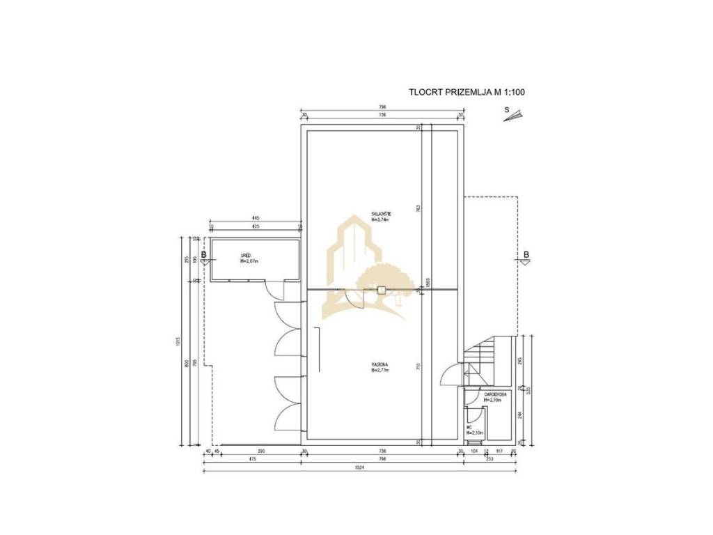 • 166 m2 zatvorenog dijela sa sanitarnim čvorom, od čega je 20 m2 u suterenu, a ostalo u prizemlju