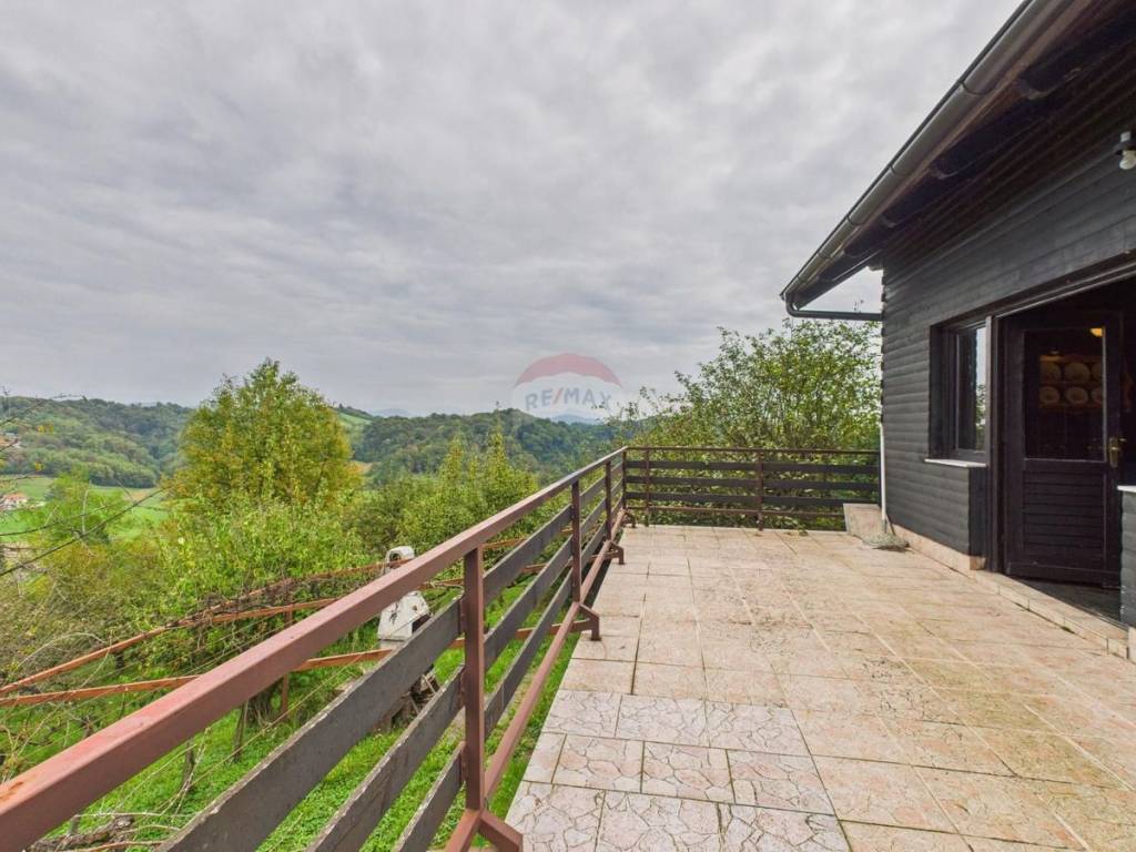 Prizemlje je potpuno uređeno, a sastoji se od ulaznog hodnika, kupaonice, kuhinje, dnevnog boravka s blagovaonom te izlaza na prostranu terasu površine oko 20 m². S terase se pruža otvoren i prekrasan pogled prema Velikom Taboru, Ivanščici i Sljemenu – pravi užitak za one koji traže mir i prirodu.