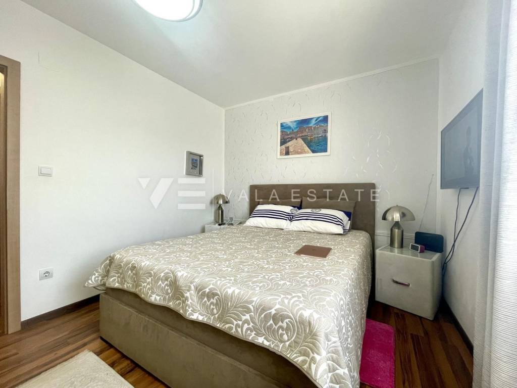 Nekretnine otok Krk, Šilo - na prodaju je jednosobni apartman ukupne površine 44 m2 smješten na prvom katu više obiteljske kuće sa ukupno šest stambenih jedinica. Sastoji se od ulaznog prostora, ostave, kupaone, spavaće sobe, kuhinje s blagovaonom i dnevnog boravka s izlazom na natkrivenu terasu. Apartman je renoviran 2023 godine te je kvalitetno opremljen i ukusno namješten, klimatiziran je, ima PVC stolariju te je odmah spreman za useljenje. Pripada mu jedno parkirno mjesto na zajedničkom dvorištu kuće, prostor u zajedničkom spremištu i okućnica od 15 m2 koja ima pristup zajedničkoj okućnici s bazenom koji je u suvlasništvu četiri stanara. Nalazi na odličnoj lokaciji samo 500 m do lijepih plaža i centra sa svim sadržajima.  Agencija Vala Estate Malinska će Vam omogućiti siguran i transparentan prijenos vlasništva i sve potrebne dokumentacije.  ID KOD AGENCIJE: a-1038  VALA ESTATE d.o.o. Mob: +385 99 444 0550  Tel: +385 51 568 917 E-mail: info@vala-estate.com www.vala-estate.com