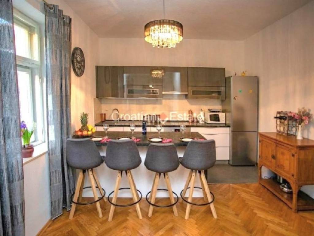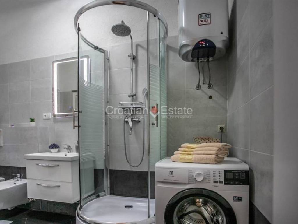 Iznajmljujemo komforni renovirani dvosobni stan smješten na prvom katu kuće. Stambene je površine 95m2, a sastoji se od ulaznog dijela, kuhinje s blagovaonicom i dnevnim boravkom, dvije spavaće sobe, dva kupatila i lijepe lođe.