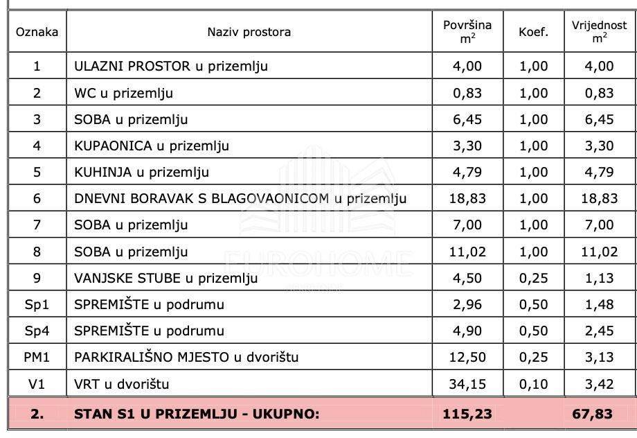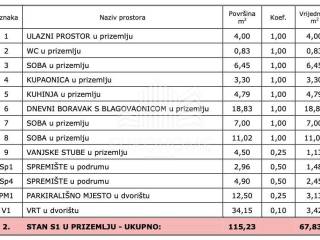 Prodaje se četverosobni stan ( 56,22m2), sa VPM (12,50), vrtom ( 38,65m2),i ostavom ( 4,35m2) u visokom prizemlju stambene zgrade na Rudešu.