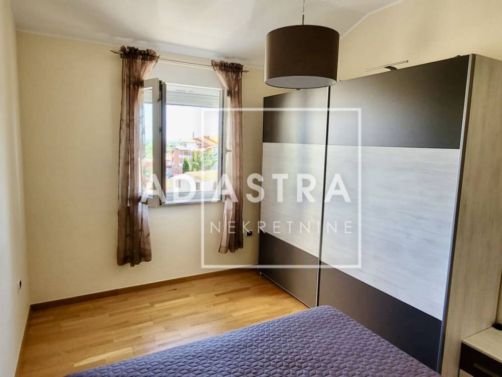 Osim jedne spavaće sobe koja je trenutno u funkciji spremišta, stan je u potpunosti namješten i kao takav se i prodaje. Opremljen je kvalitetnom PVC stolarijom s roletnama i komarnicima, protuprovalnim vratima te dvije klimatske jedinice koje se koriste za grijanje i hlađenje prostora.