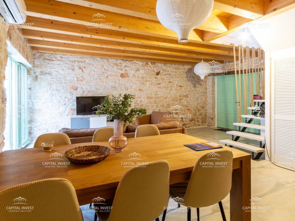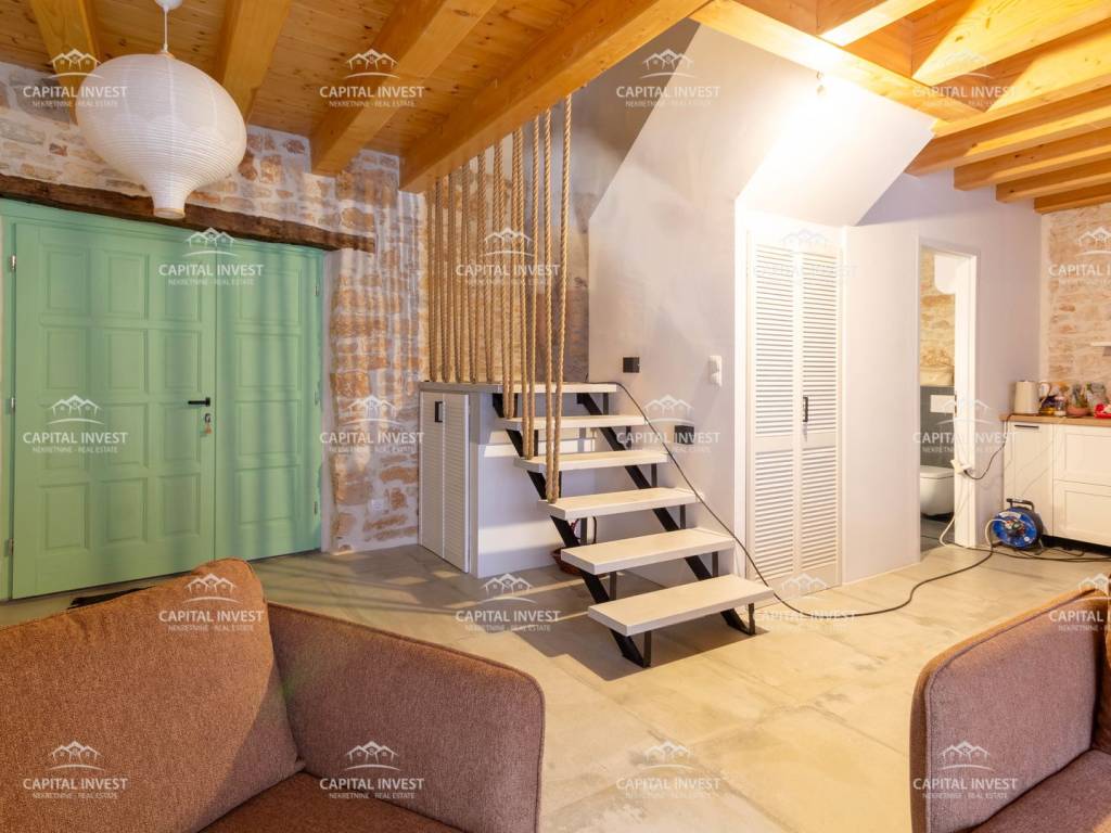 Prodajemo kompletno uređenu i opremljenu kuću u srcu Vodnjana. Kuća se sastoji od prizemlja i prvog kata. U prizemlju se nalazi ulazni prostor, dnevni boravak s kuhinjom i blagavaonom, jedna kupaona, dvije ostave i izlaz na dvorište površine 20 m2. Na katu se nalazi hodnik te dvije prostorane spavaće sobe. Grijanje i hlađenje je riješeno putem klima uređaja u svakoj prostoriji. Vlasništvo uredno 1/1, tereta nema.