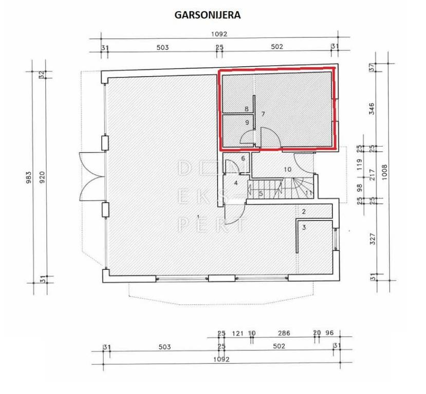 GARSONIJERA: kupaonica, soba i kuhinja - 16,69 m2