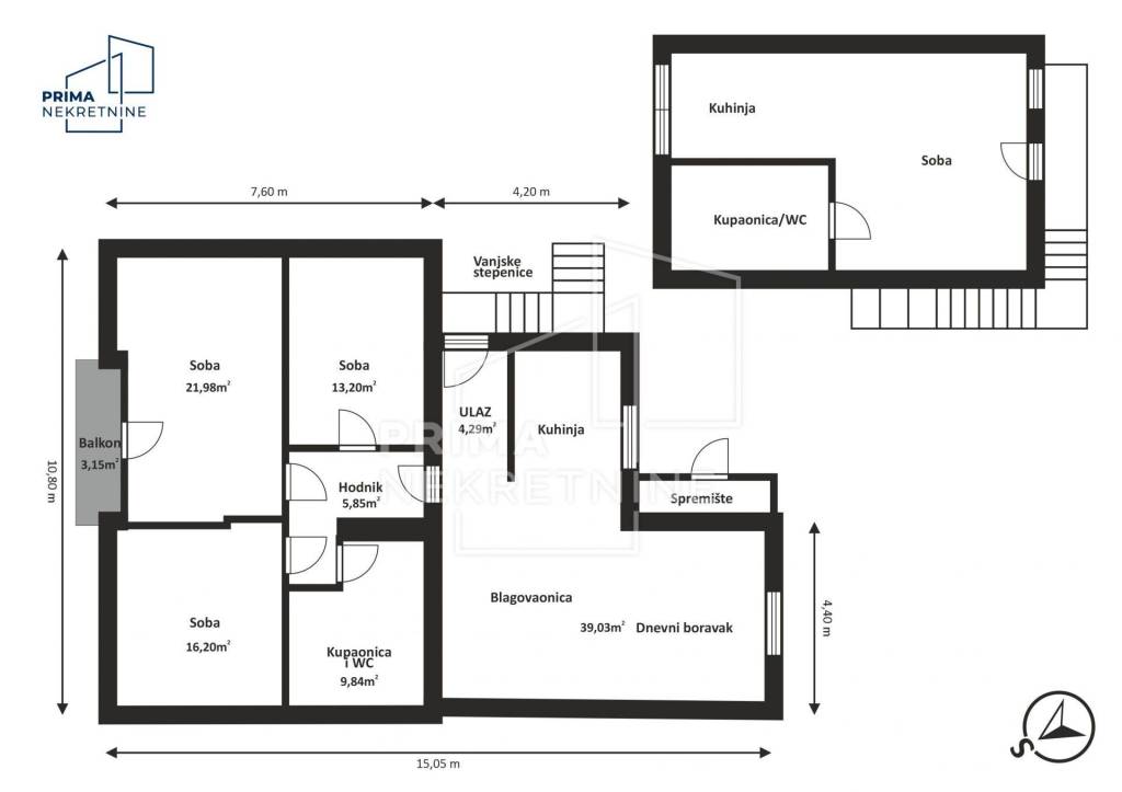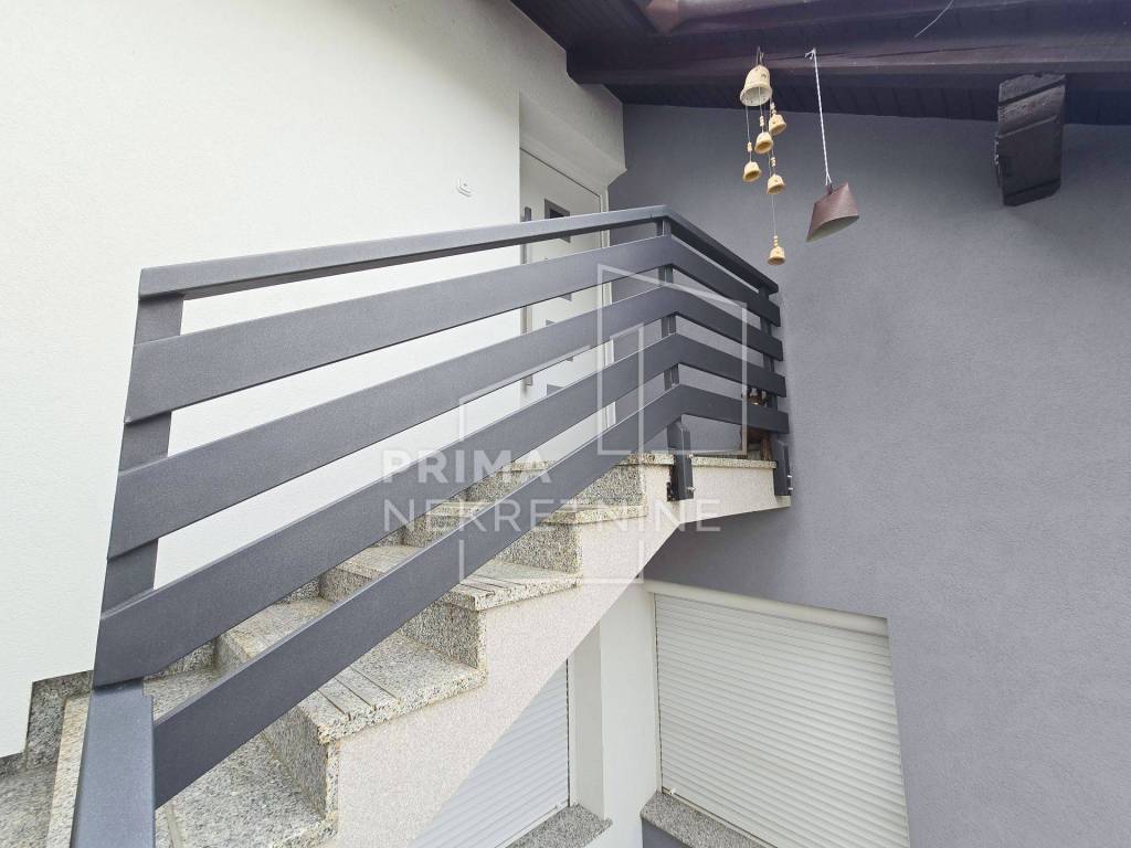Vlastita vanjska terasa nudi idealno mjesto za opuštanje i druženja na otvorenom, dok uređeno zasebno dvorište površine 243 m2 pruža mir, privatnost i mogućnost dodatnog uređenja prema željama novih vlasnika.