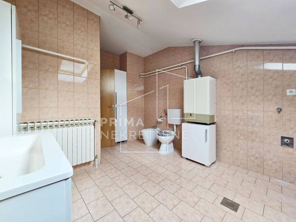 Opremljen je kuhinjom i namještajem po mjeri, kvalitetnom PVC stolarijom i Velux krovnim prozorima, klima uređajima te etažnim plinskim grijanjem, a svi sustavi su uredno održavani i potpuno funkcionalni.