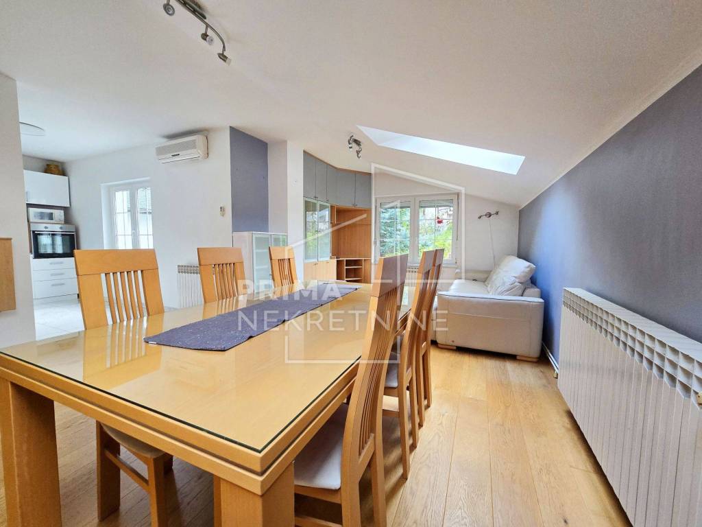 U ponudi je prostran stan površine 111,96 m2, smješten u potkrovlju obiteljske kuće u Samoboru, na Gizniku, s posebnim ulazom koji osigurava potpunu privatnost i osjećaj samostalnog stanovanja.