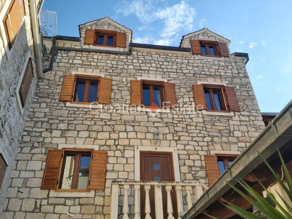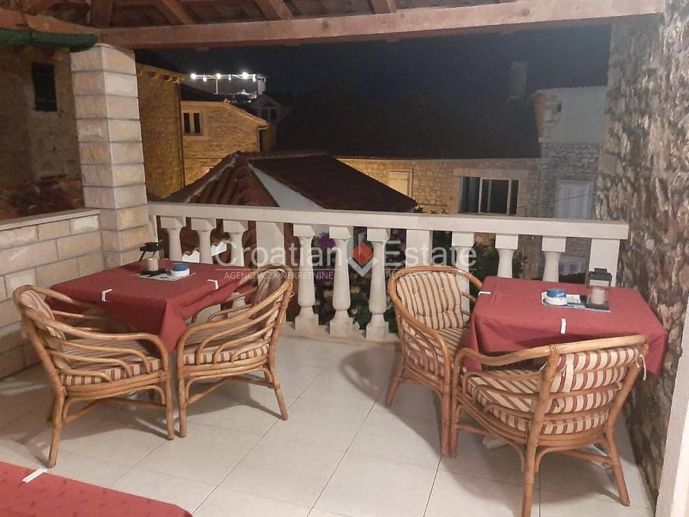 Na prodaju nudimo kamenu kuću smještenu na otoku Braču, na traženoj lokaciji, u samom centru mjesta gdje su svi važniji sadržaji, samo oko 15m od mora i oko 50m od glavne mjesne plaže. S obzirom na to da sadrži restoran i šest apartmana, idealna je za kombinaciju poslovne i stambene namjene, a autohtoni eksterijer daje joj posebnu vrijednost i čini ju interesantnom za turističke svrhe. Također, sa zadnjeg kata kuće se pruža atmosferičan pogled na more i šarmantne stare kamene kuće.