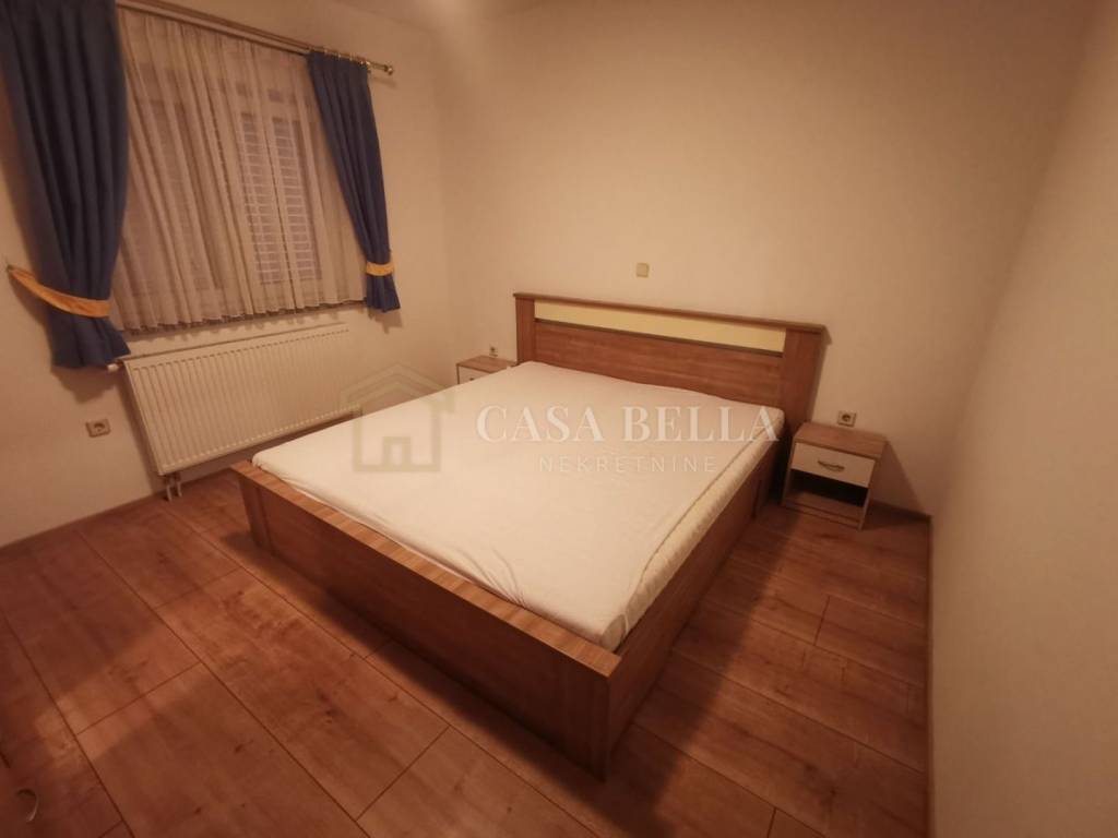 3-soban i namješten stan na prvom katu sa zasebnim ulazom, dnevni boravak s kuhinjom (s perilicom posuđa) i blagovaonom, dvije spavaće sobe, kupaonica, spremište, hodnik i dva natkrivena balkona.