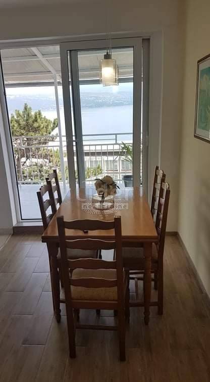 OPATIJA Ovaj dvosobni stan od 52m2 s natkrivenom terasom od 15m2 nalazi se samo 150m od mora i 10 minuta hoda, šetnicom uz more, do centra Opatije (Slatina). S terase i iz svih ostalih prostorija, uključujući i kuhinju pruža se veličanstven pogled na cijeli Kvarner. Ova novo uređena oaza iznad hotela Adriatic je savršena za poslovne ljude koji žele uživati u mirnom prostoru okruženom mediteranskom šumom.