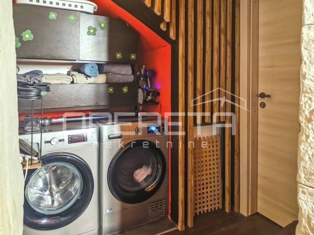 Dva stana, koji u naravi djeluju prostranije od površine upisane u zemljišne knjige, odvojena su malim ulaznim stepeništem, hodnikom i izuzetno bitnom praonicom.