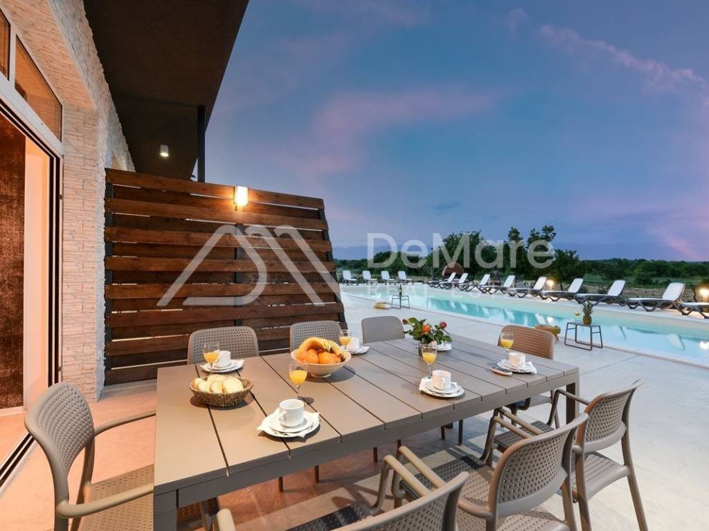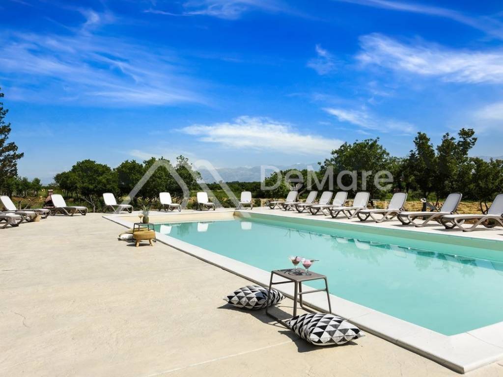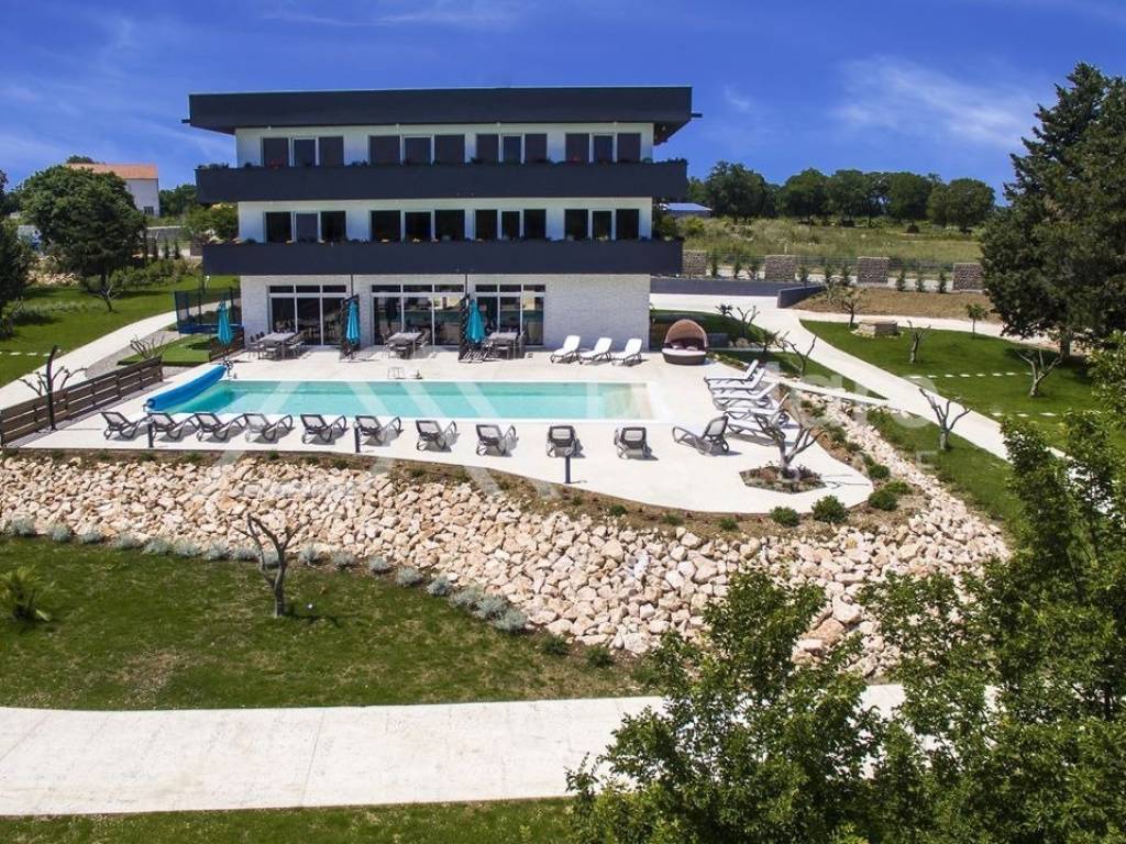Novoizgrađena ekskluzivna vila od 600 m2 na periferiji grada Zadra. Vila se sastoji od 3 ekskluzivna apartmana i nalazi se na uređenoj parceli veličine 2660 m2. Ispred vile nalazi se grijani bazen veličine 14 x 5 m, te prostor za odmor i zabavu ( grill, ljuljačke, ležaljke...). Kompletna okućnica je osvijetljena i hortikulturalno uređena.