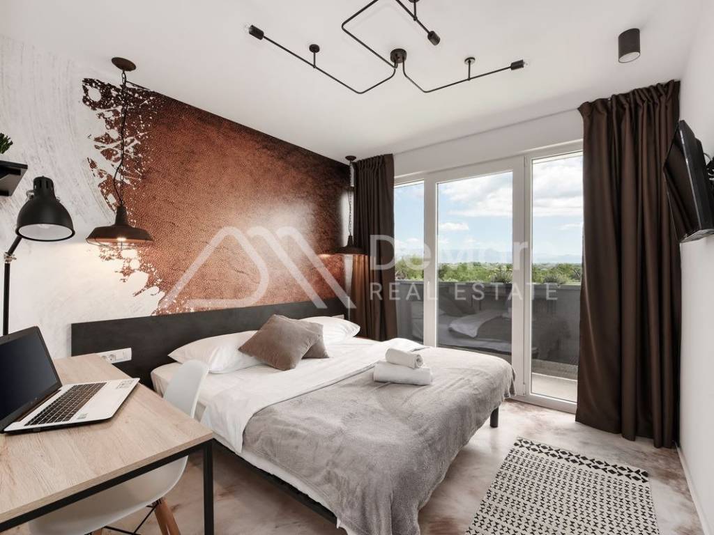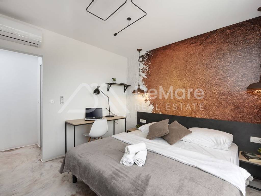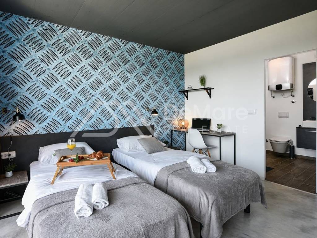 Najveći apartman proteže se na 190 m2 i ima 5 spavaćih soba sa mogučnošću smještaja 10 osoba. Gostima su na raspolaganju 4 komforne kupaonice i jedan odvojeni wc.