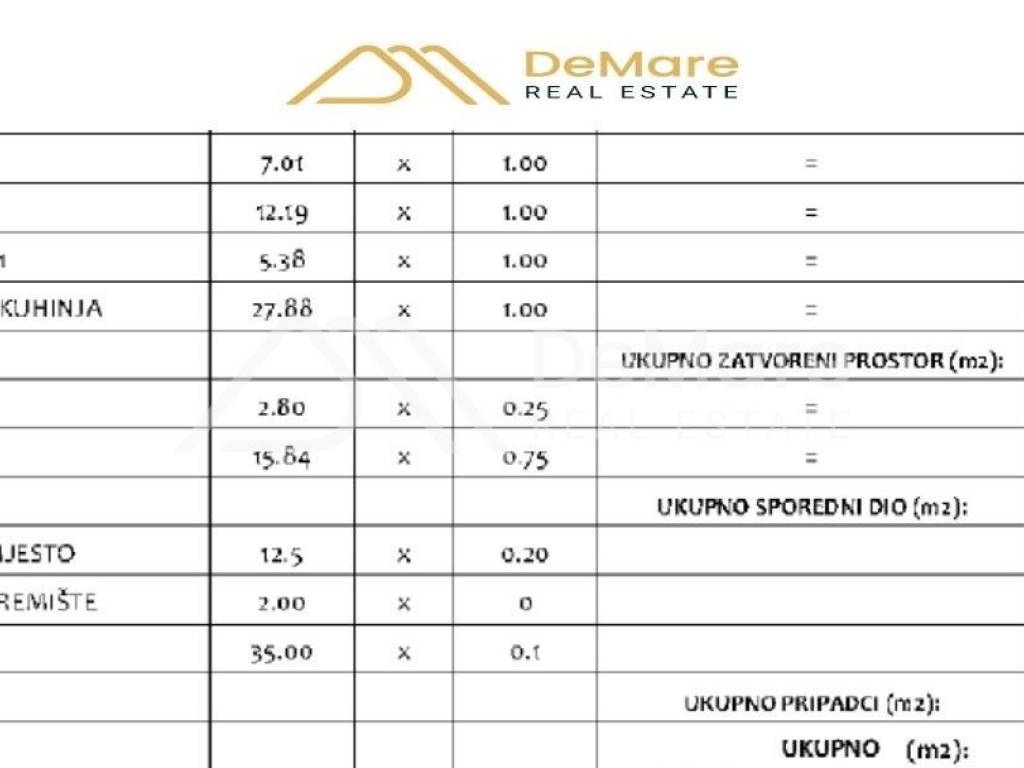 Ukupna obračunska vrijednost korisne površine apartmana s pripadcima iznosi 71,04 m2.