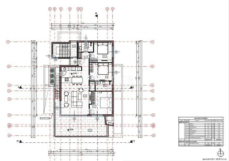 Penthouse ukupne površine 131m2 odličnog rasporeda prostorija, svojom prostranom krovnom terasom, bazenom te jugozapadnom orijentacijom pruža sve pogodnosti uživanja u mediteranskom načinu života. Sastoji se od spremišta, dvije kupaonice, tri spavaće sobe, te dnevnog prostora otvorenog koncepta koji uključuje boravak, kuhinju i blagovaonicu. Iz dnevnog prostora izlazi se na natkriveni balkon sa panoramskim pogledom na more. Što tek reći na pogled sa krovne terase koja u sklopu ima i bazen, idealno mjesto za uživanje u ljetnim večerima.