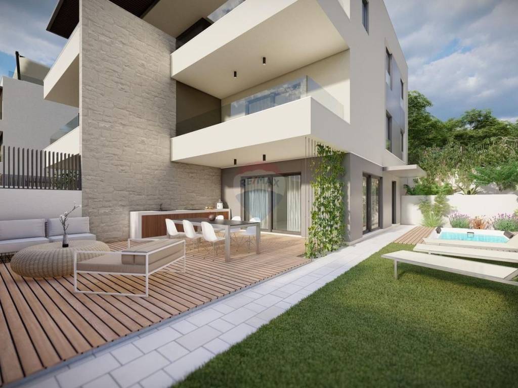 Unutarnji stambeni prostor iznosi 107.48 m2, dok dodatne površine uključuju natkriveni balkon (35.16 m2), prostranu krovnu terasu (135.62 m2), vlastito stubište (12.51m2) te dva privatna parkirna mjesta ispred zgrade.