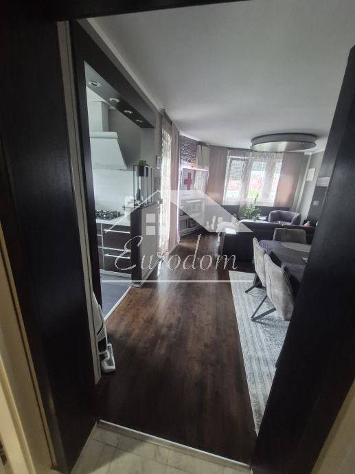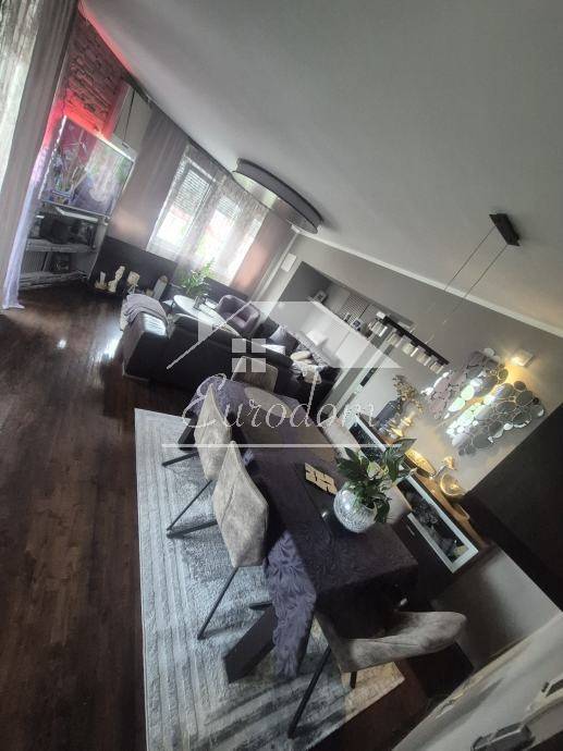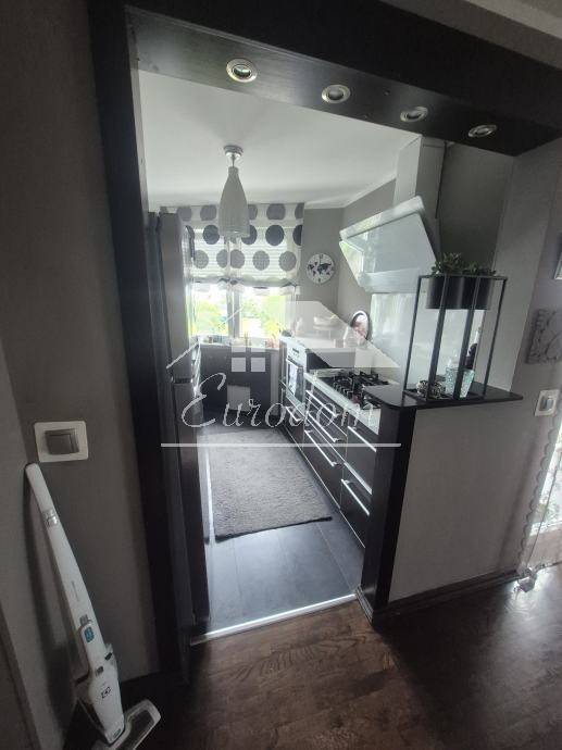 Udoban četverosoban stan u stambenoj zgradi s liftom, smješten na visokom katu (5 od ukupno 6)  koji osigurava lijep otvoren pogled i dovoljno dnevne svjetlosti. Smješten u mirnoj zoni naselja, stan se nalazi svega nekoliko koraka od vrtića te svih ključnih sadržaja za kvalitetan i udoban svakodnevni život.