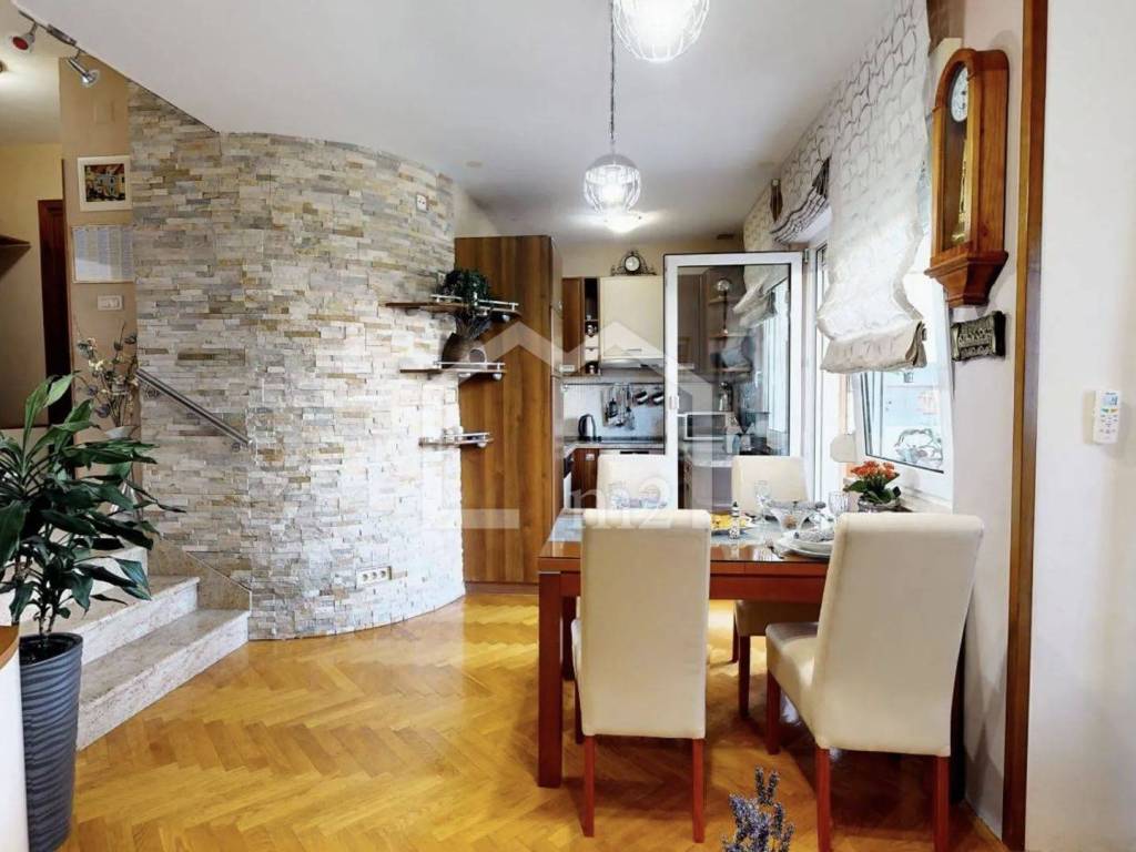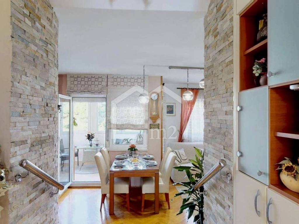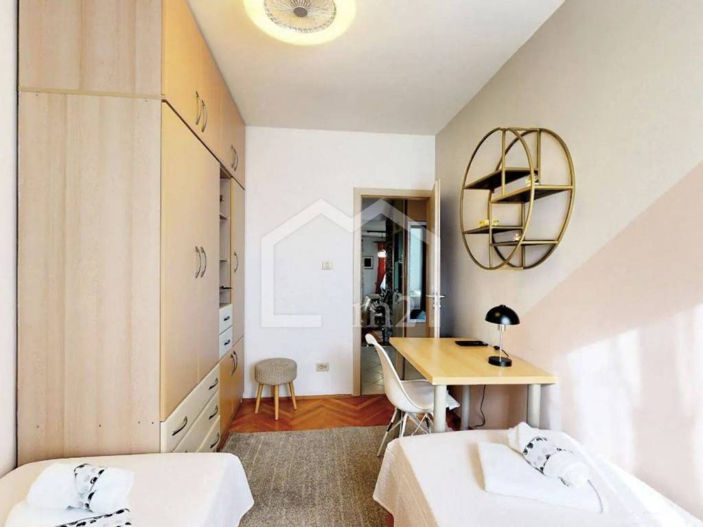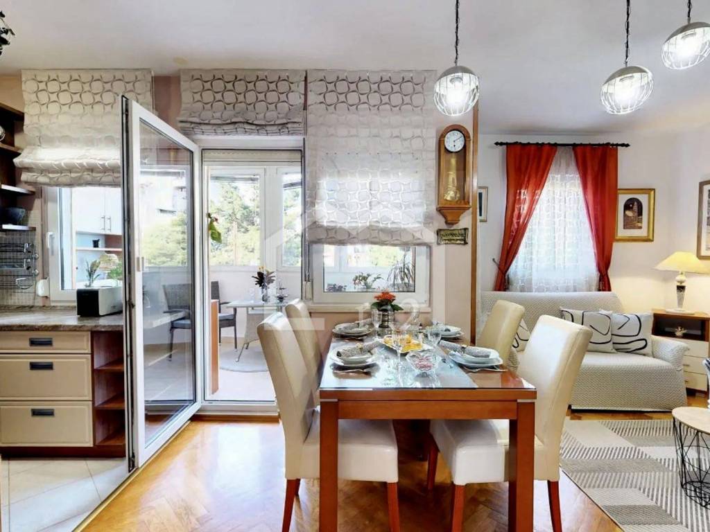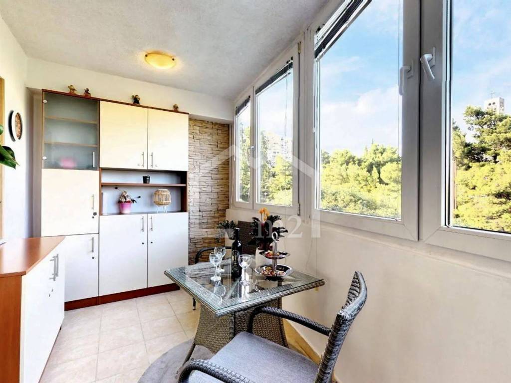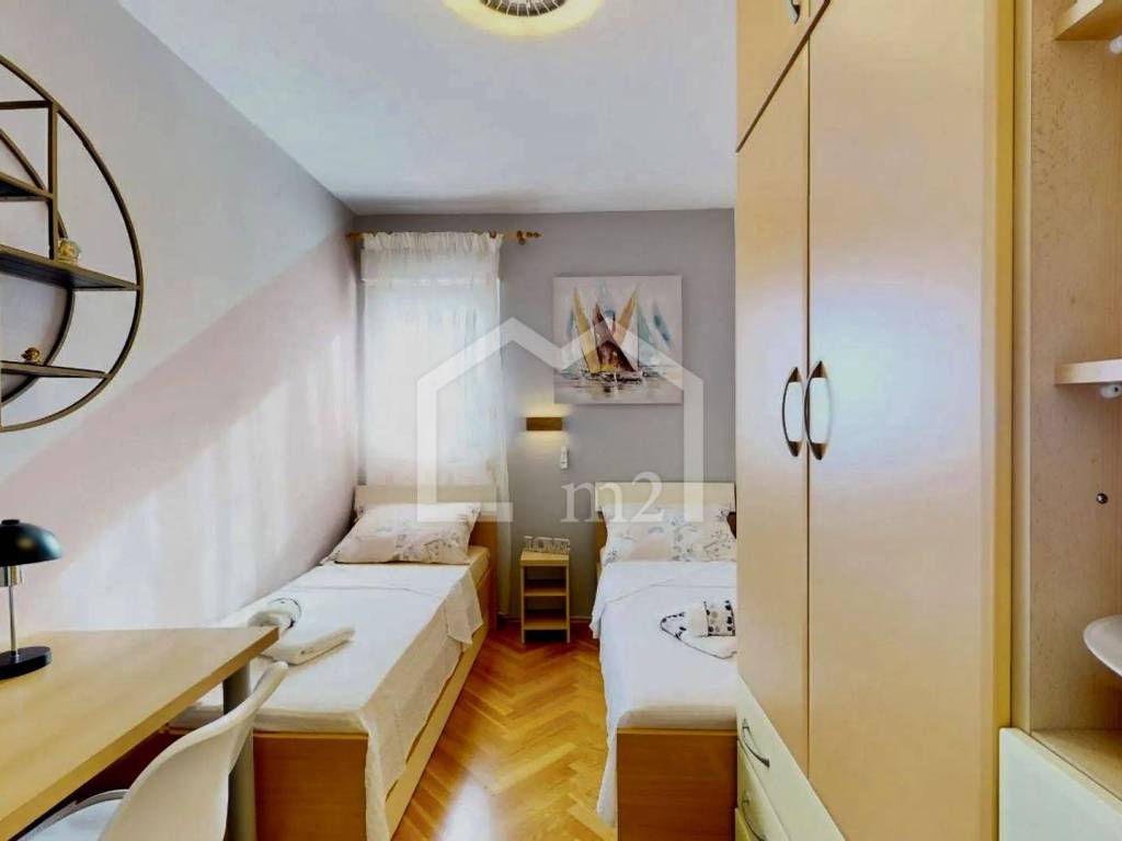 Iznajmljuje se dugoročno, komforan dvosoban stan na trećem katu stambene zgrade na Žnjanu. Sastoji se od ulaznog dijela, dvije spavaće sobe, kuhinje s blagovaonom, dvije kupaonice, dnevnog boravka iz kojeg se izlazi na veliku lođu koja je uređena i zatvorena te je možete koristiti tokom cijele godine. Sa lođe se pruža i pogled na more.