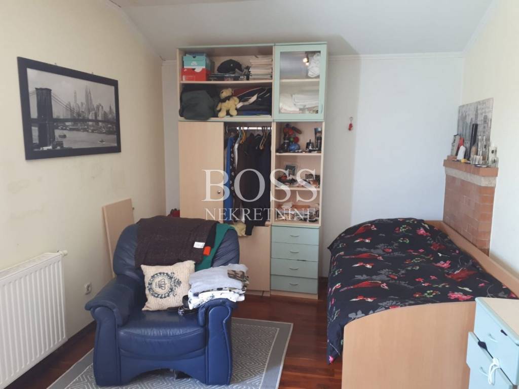 Viškovo, Saršoni, u ponudi imamo odličnu samostojeću obiteljsku kuću koja se sastoji od dvoetažnog stana, podruma i tavanskog prostora. Dvoetažni stan je u povišenom prizemlju i sastoji se od natkrivene ulazne terase, hodnika, dnevnog boravka, kuhinje s blagovaonom, veće spavaće sobe, vešeraja, stepenište vodi na prvi kat gdje se nalaze tri spavaće sobe od kojih jedna ima balkon, manje prostorije koja služi kao garderoba i veće kupaone s toaletom koje ima podno grijanje. Iznad prve etaže nalazi se tavanski prostor koji služi kao spremište, a u podrumu se nalazi dodatna prostorija za razne namjene. Kuća ima odličnu aluminijsku stolariju, grijanje je na drva (kamin koji grije cijelu kuću), etažno centralno na plin i radijatore, klima uređaj u svim prostorijama. Nekretnina ima lijepu okućnicu površine 853m2 na kojoj se može smjestiti bazen, kao i ostali dodatni sadržaji. Kuću krase podovi od tikovine, keramika, brački kamen i mramor, namještena je vrlo kvalitetnim dizajnerskim namještajem koji je izrađen po mjeri, te se kao takva i prodaje. Boss, kontakt: 091/379-1010 Dragan