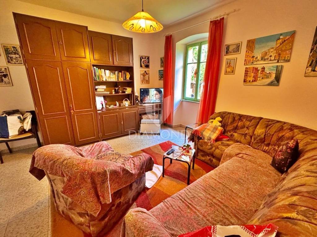 Na prodaju kuća površine 160 m² kroz dvije etaže, smještena u mirnoj i zelenilom okruženoj okolici Labina, svega 10 minuta vožnje od grada i mora.