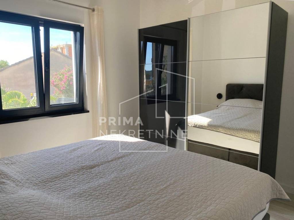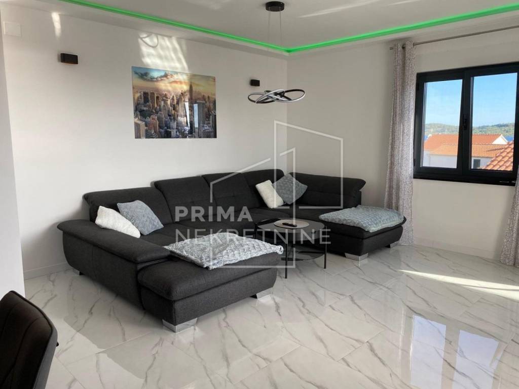 U ponudi je moderno uređena apartmanska kuća na atraktivnoj lokaciji u Srimi kraj Vodica, udaljena svega pedesetak metara od plaže. Parcela ima ukupnu površinu od 489 m2, od čega je 141 m2 uređena okućnica s dvorištem, roštiljem, spremištem i osiguranim parkirnim mjestima za do osam vozila.