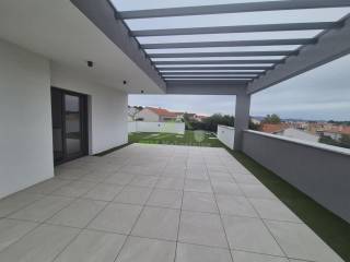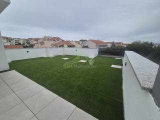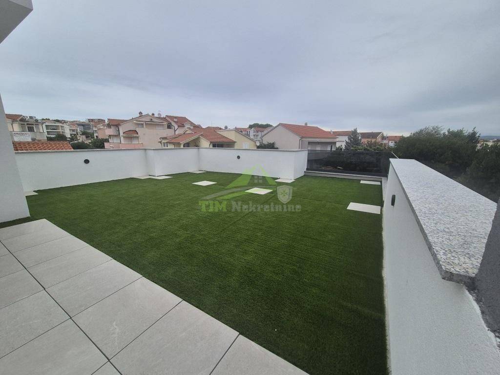 Kuća katnica korisne površine 113,58 m2 + vrt 7,15 m2 + 28,63 m2 terase u prizemlju + 153,04 m2 terase na 2. katu (krovne) + dva parkirna mjesta.Sastoji se od tri etaže prizemlja, kat te 2. kat (krovna terasa).Sa krovne terase se proteže prekrasan panoramski pogled na more; isto tako na terasi je predviđeno mjesto za jacuzzi i bazen.