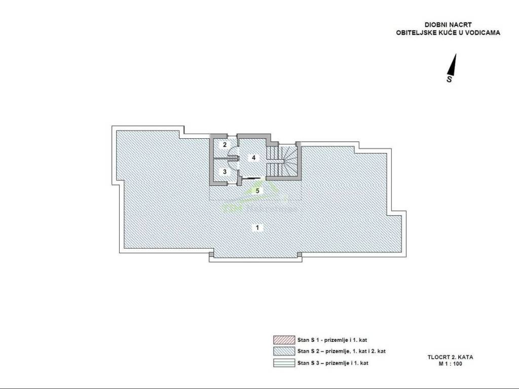 KAT:- spavaća soba I- spavaća soba II- spavaća soba III- kupaonica sa WC-om