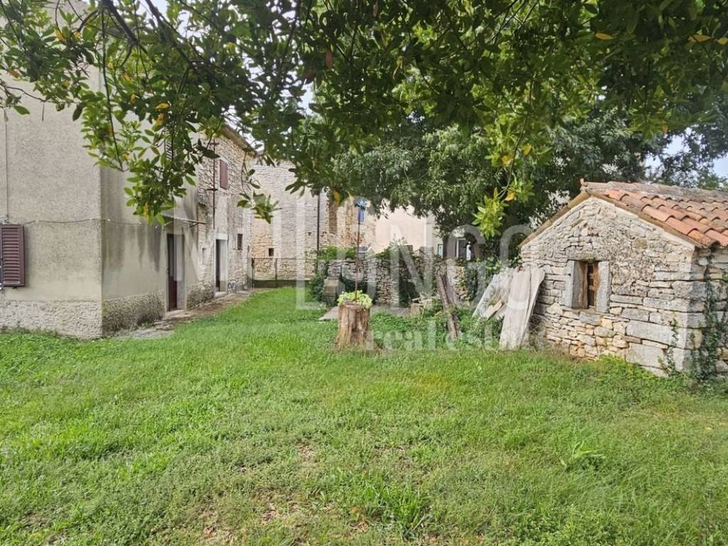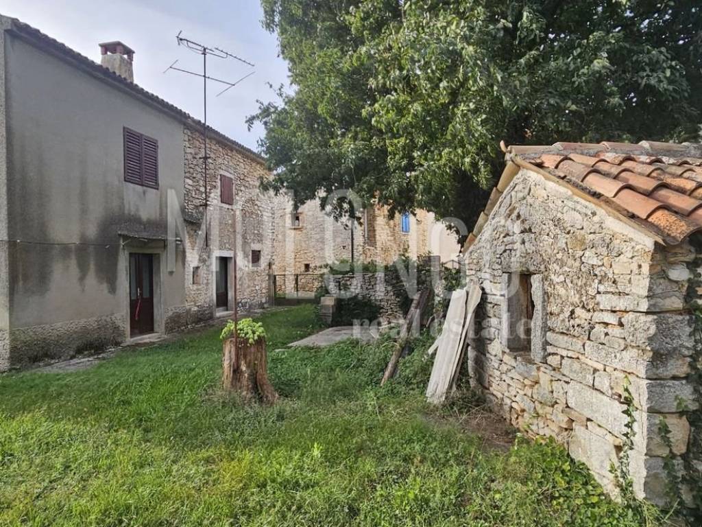 Istra, Šišan, stara kamena kuća za adaptaciju s okućnicom od 290m2. Jednom stranom vezana je za kuću do. Prostire se na 3 etaže: prizemlja, prvog kata i potkrovlja a svaka etaža broji 28m2.