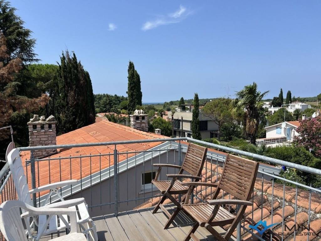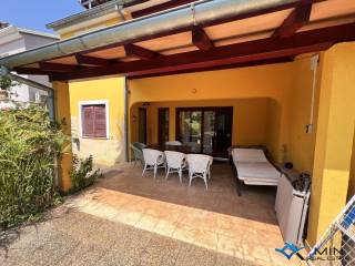 Prodaje se kuća s puno potencijala na traženoj lokaciji u Novigradu udaljena 200 m od mora i lijepo uređene plaže te 800 m od centra grada. Kuća ima 120 m2 te  je podijeljen na 2 etaže ; prizemlje i 1. kat. U prizemlju se nalazi ulazni hodnik, spremište, kupatilo, spavaća soba, kuhinja s izlazom na natkrivenu terasu i dnevni boravak s izlazom na natkrivenu terasu i vrt. Na katu se nalazi kupatilo i  2 spavaće sobe od kojih jedna ima 2 izlaza na balkon na kojem se nalaze stepenice koje vode do krovne terase s lijepim pogledom na more. Grijanje i hlađenje u kući je putem klima uređaja, kamina i centralnog grijanja. Kuću je moguće koristiti u stambene ili turističke svrhe.